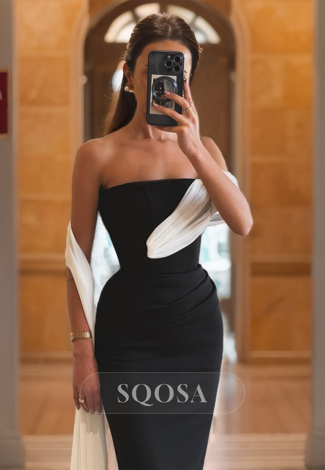 This elegant tube top sleeveless mermaid prom dress features pleated detailing and a floor-length design to elongate and flatter your figure. The white sweep train adds a touch of sophistication to this stunning evening gown. Perfect for making a statement at any formal event.
