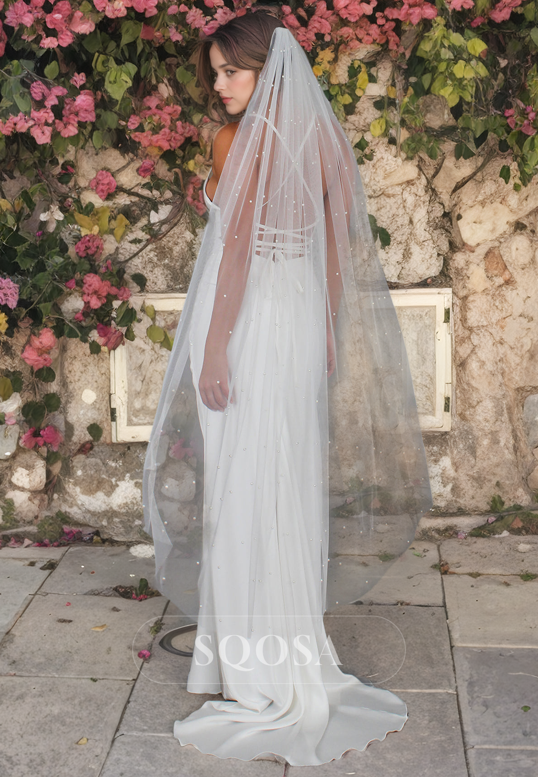 Simple Sweetheart Sheath Strapless Satin Boho Wedding Gown Fitted with Train Wedding Dress