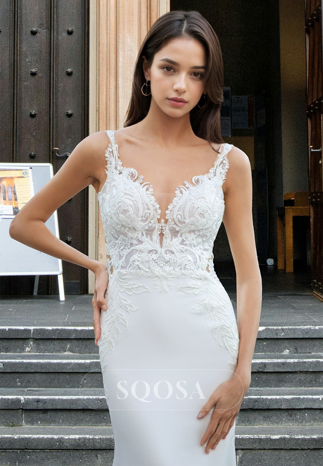 Introducing our V-Neck Spaghetti Straps Sleeveless Bride Gowns Beaded Applique Mermaid Prom Dress with Sweep Train. This stunning dress features a flattering v-neckline and delicate spaghetti straps for a feminine touch. The intricate beaded applique adds a touch of elegance, while the mermaid style and sweep train create a timeless silhouette. Perfect for any special occasion, this dress will make you feel confident and beautiful.