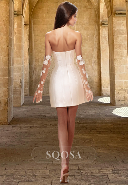 Sweetheart Off-Shoulder Sleeveless Beaded Satin Short Mermaid Wedding Dress with Tulle Gloves