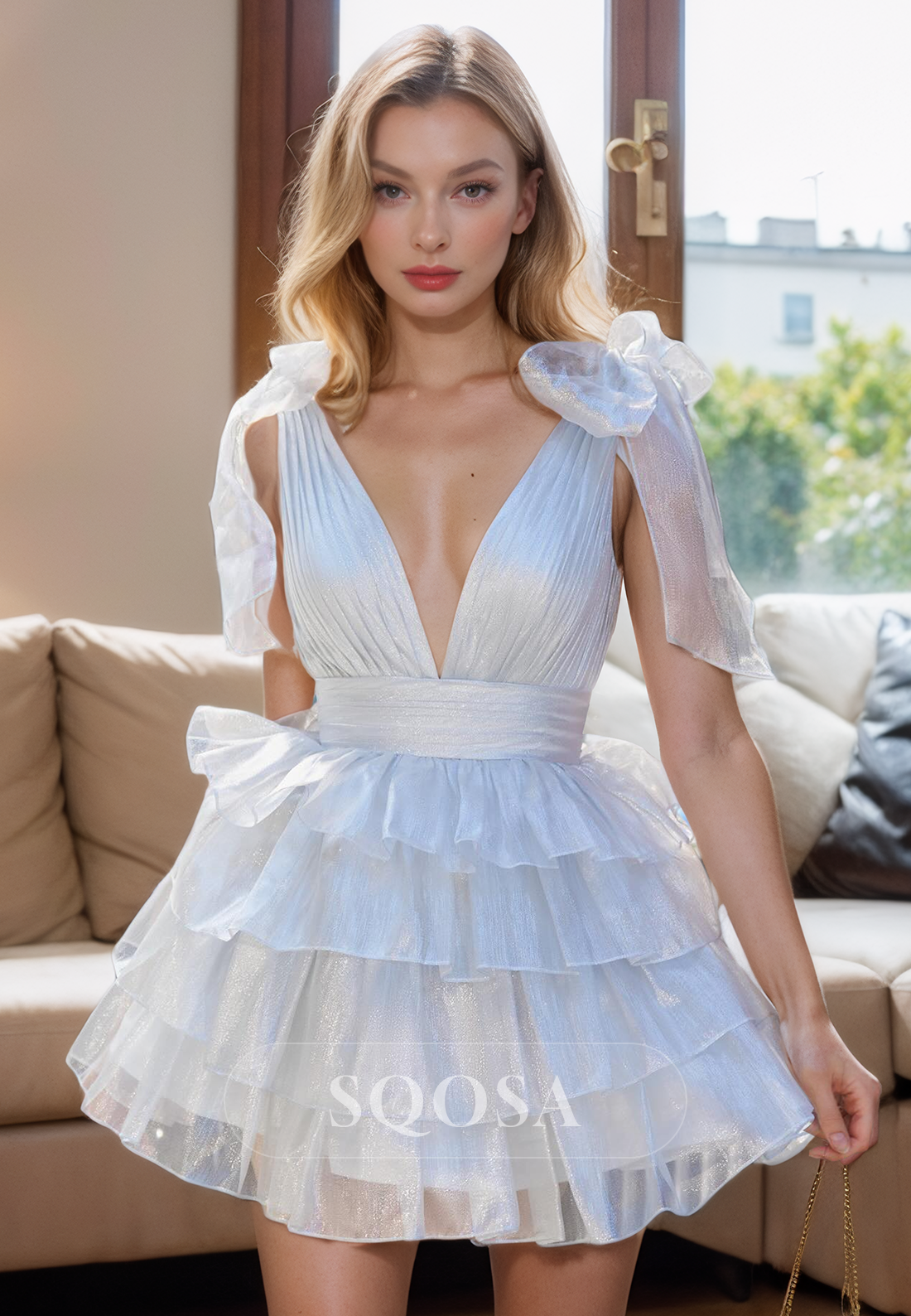 A Line V neck Tiered Short Homecoming Dress Cute Homecoming Dress