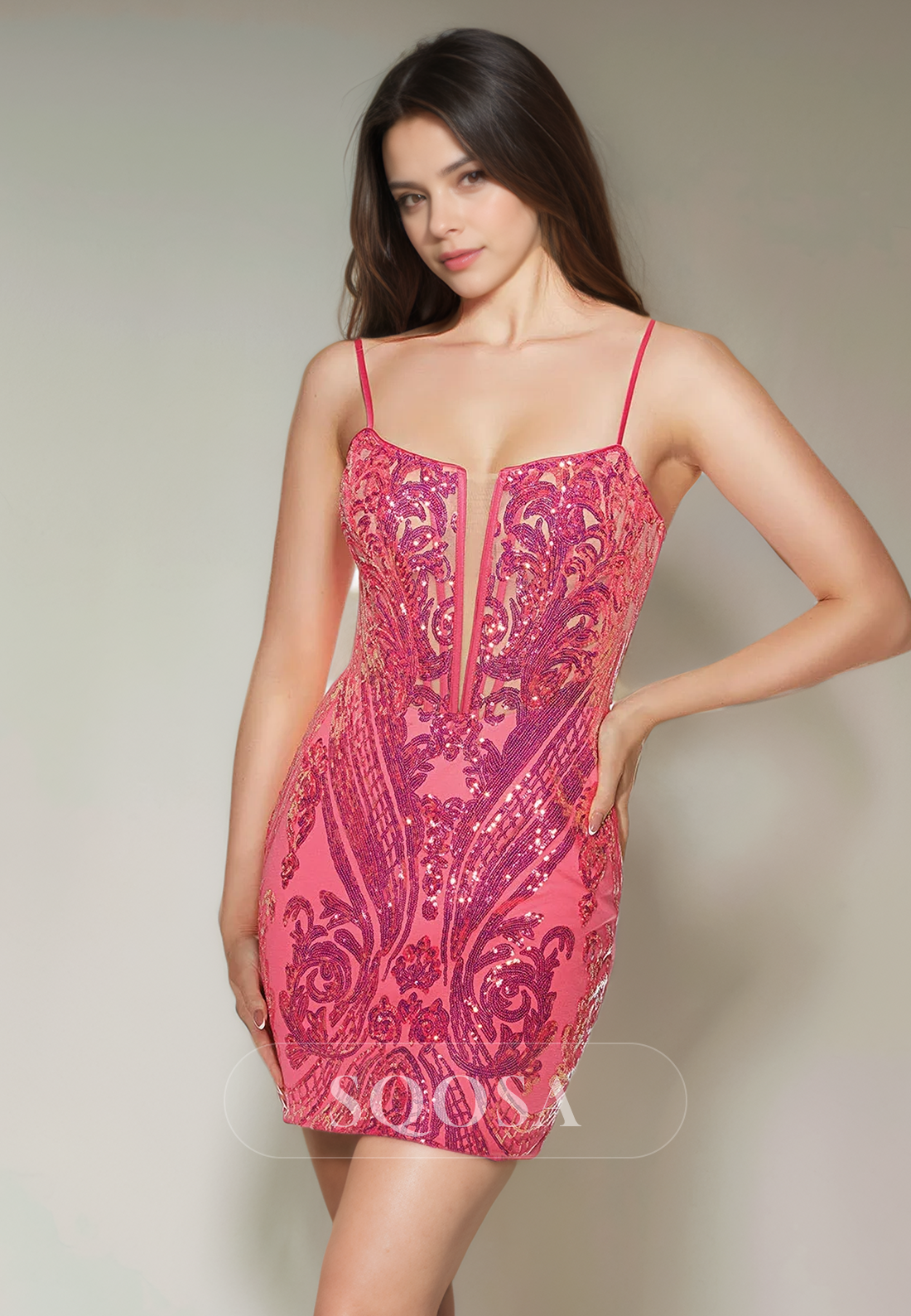 Spaghetti Spaghetti V Neck Appliques Short Homecoming Dress Tight Graduation Dress