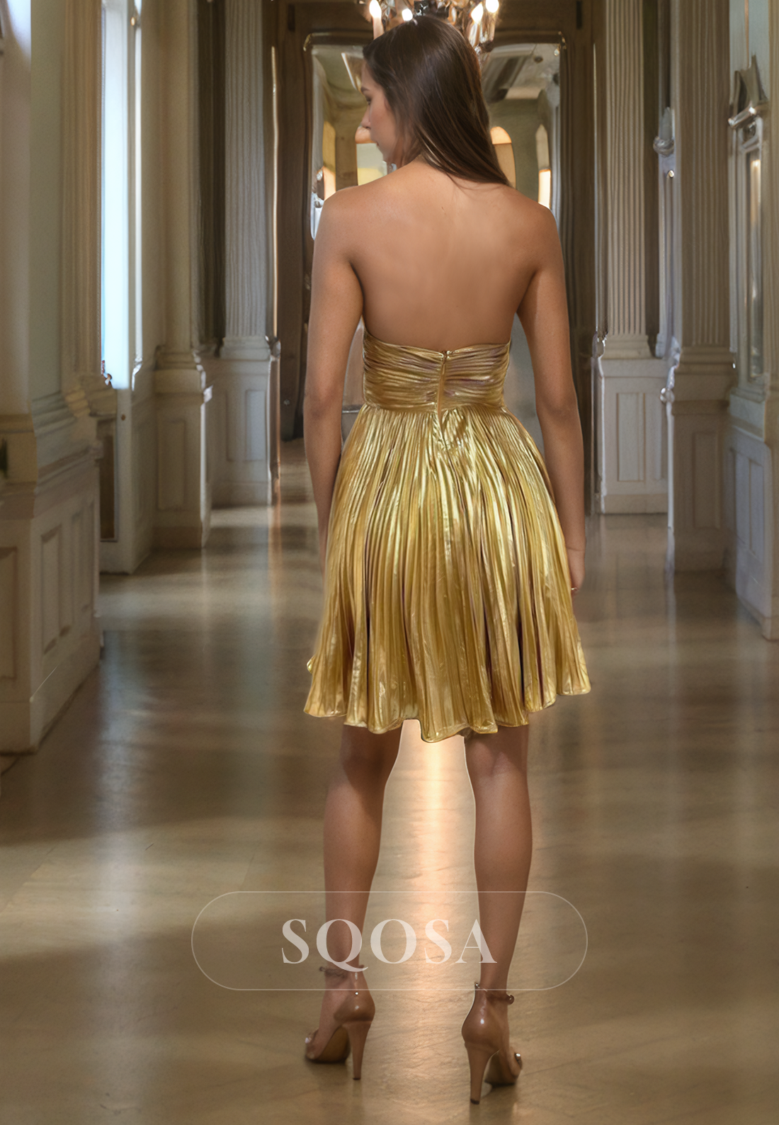 Discover the perfect blend of elegance and comfort with our A-Line Cross-Neck Homecoming Dress. The pleated ballgown design creates a flattering silhouette while the sleeveless cross-neck style adds a touch of sophistication. Perfect for any special occasion, this dress will make you feel confident and stunning.