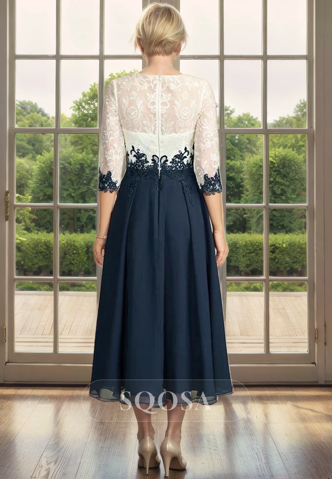 A Line Lace Appliques 3/4 Sleeves Elegant Mother of the Bride Dress Tea Length Cocktail Dress
