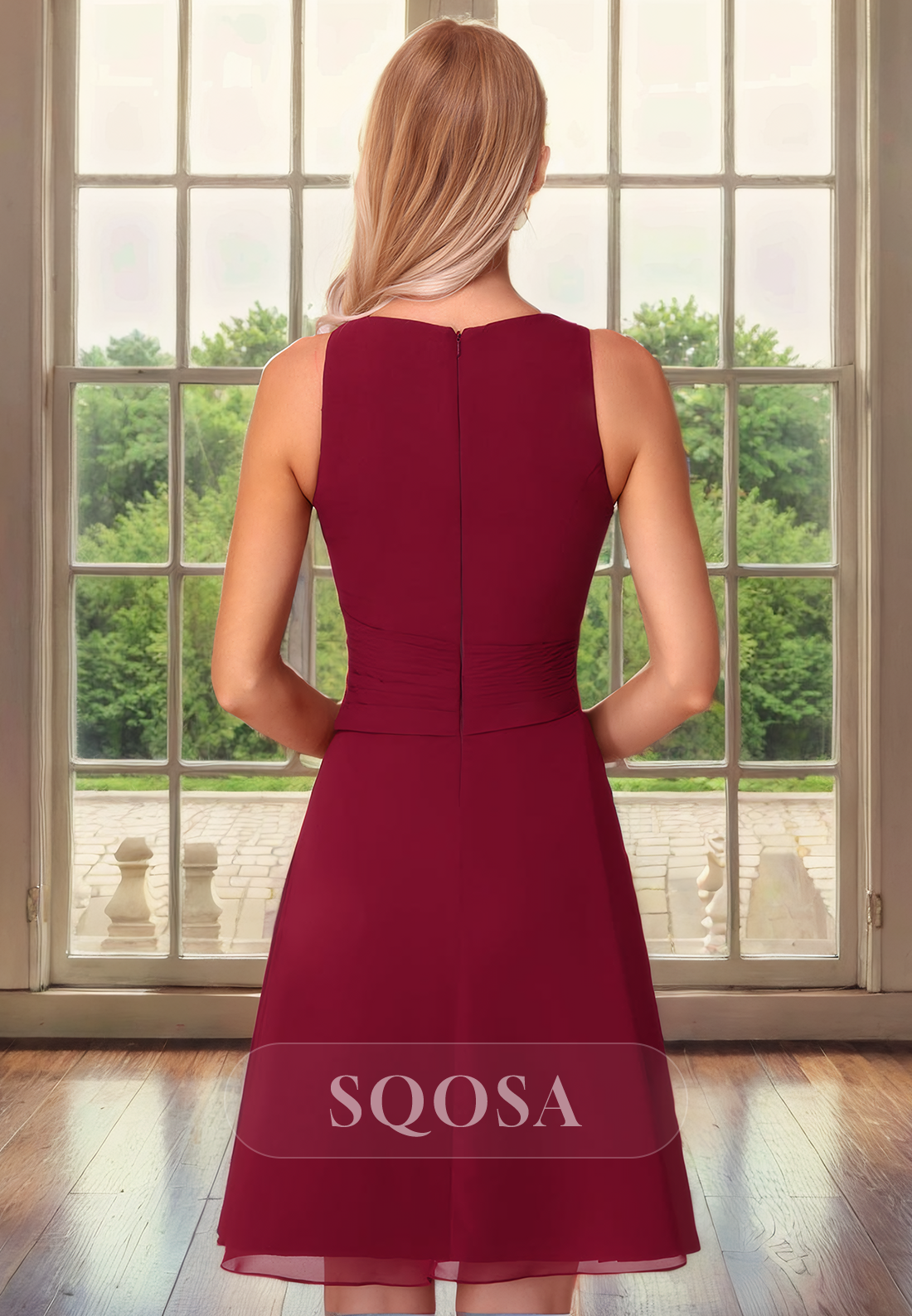 Expertly crafted, this A Line Bateau Chiffon Pleats Burgundy Mother of the Bride Dress with Jacket for Wedding exudes elegance and sophistication. The bateau neckline and chiffon fabric create a flattering A-line silhouette, while the pleats add subtle texture. The matching jacket provides versatility for any weather.