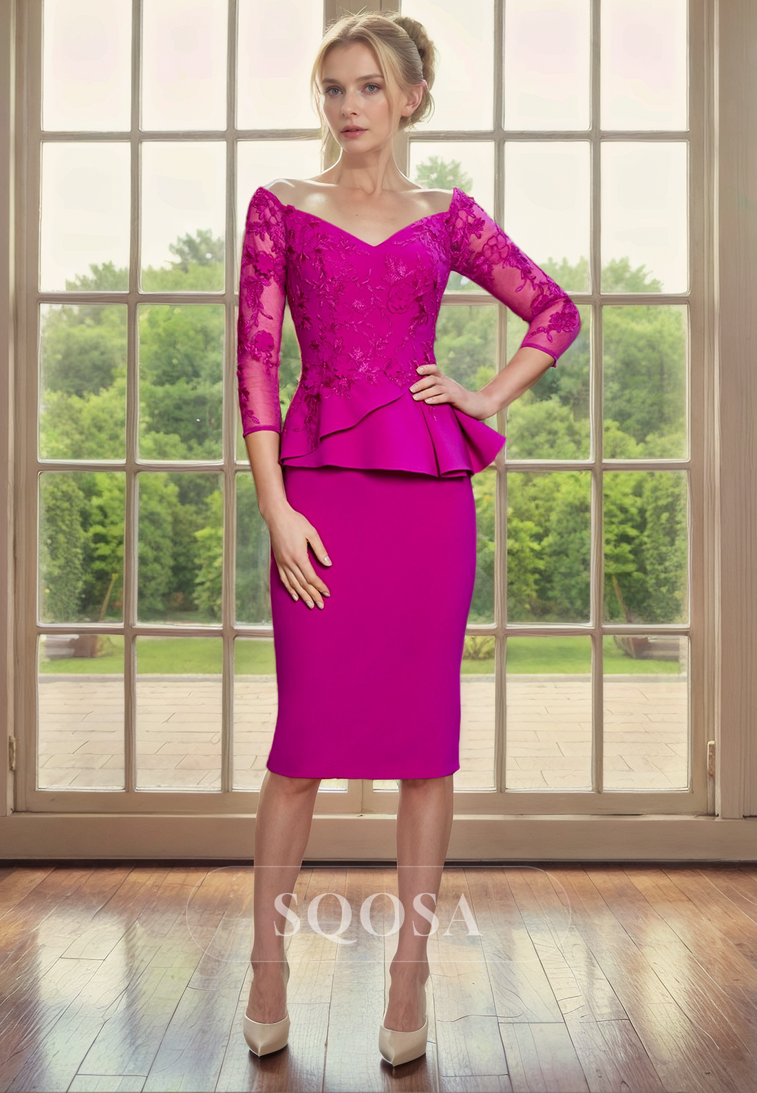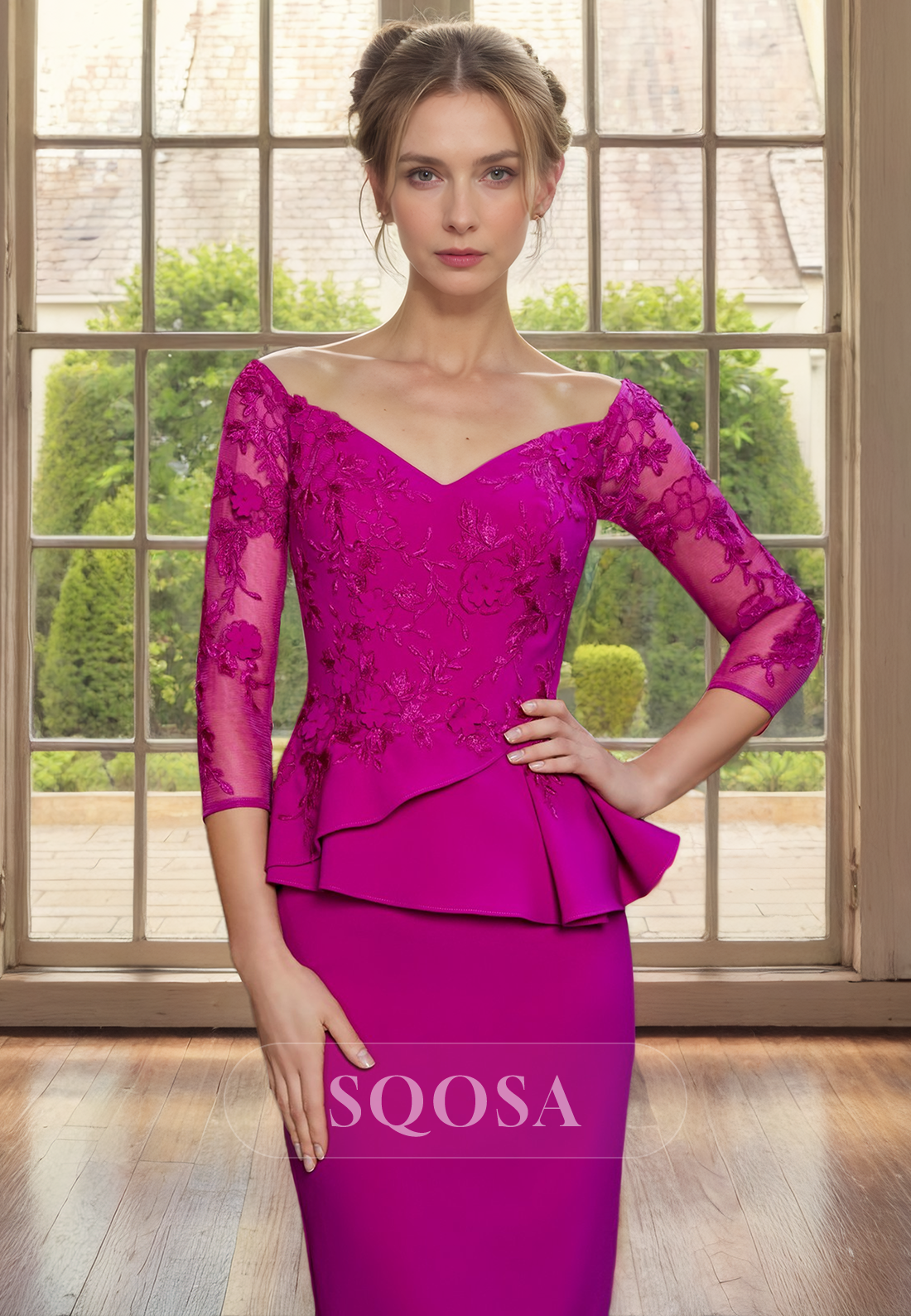 Sheath Off Shoulder Lace Appliques 3/4 Sleeves Elegant Mother of the Bride Dress
