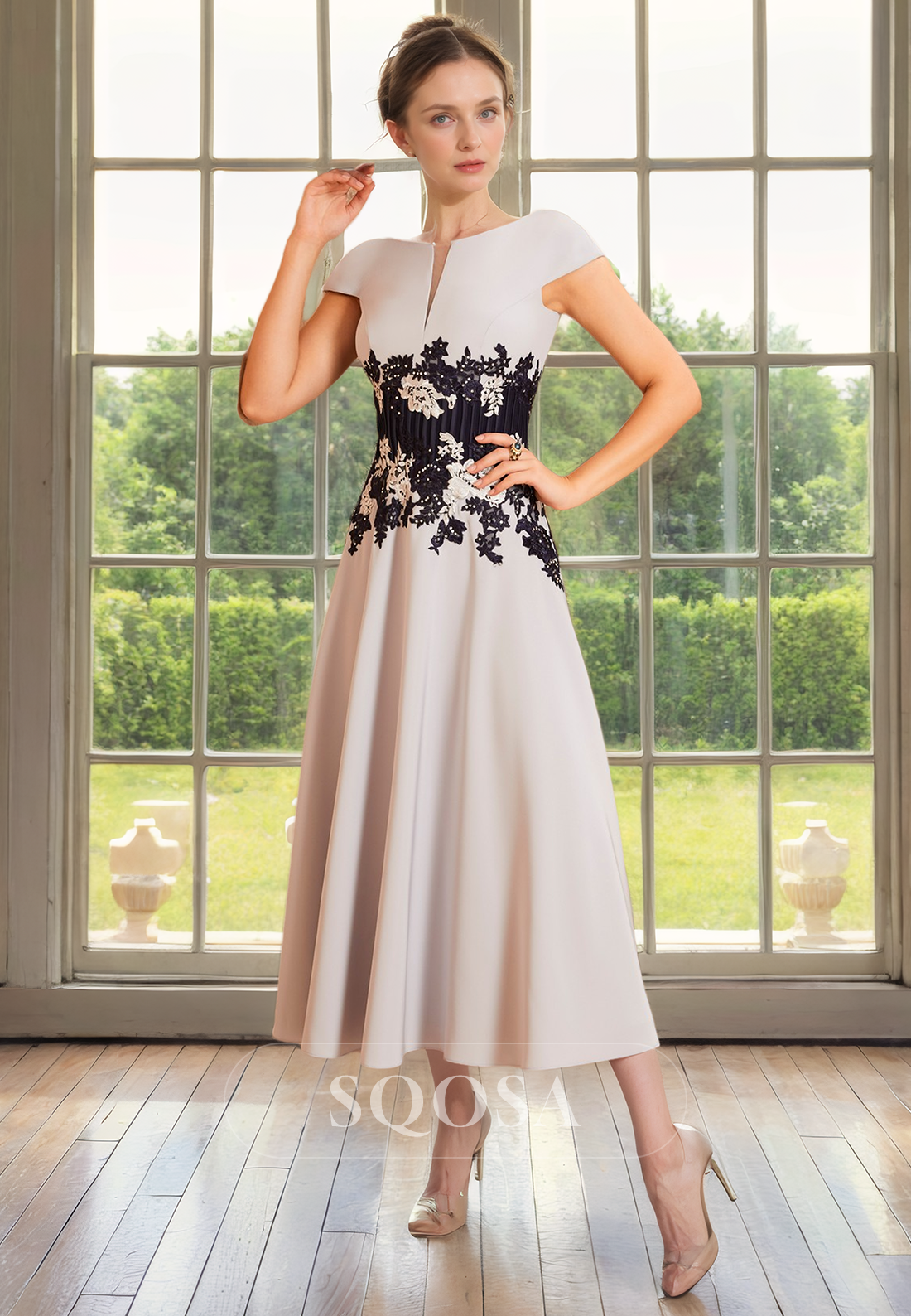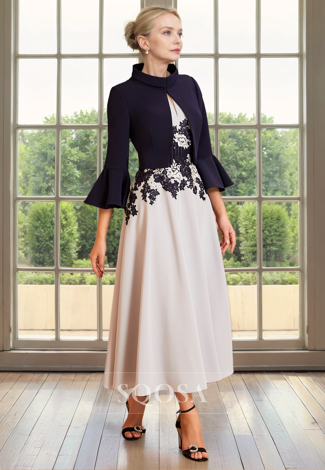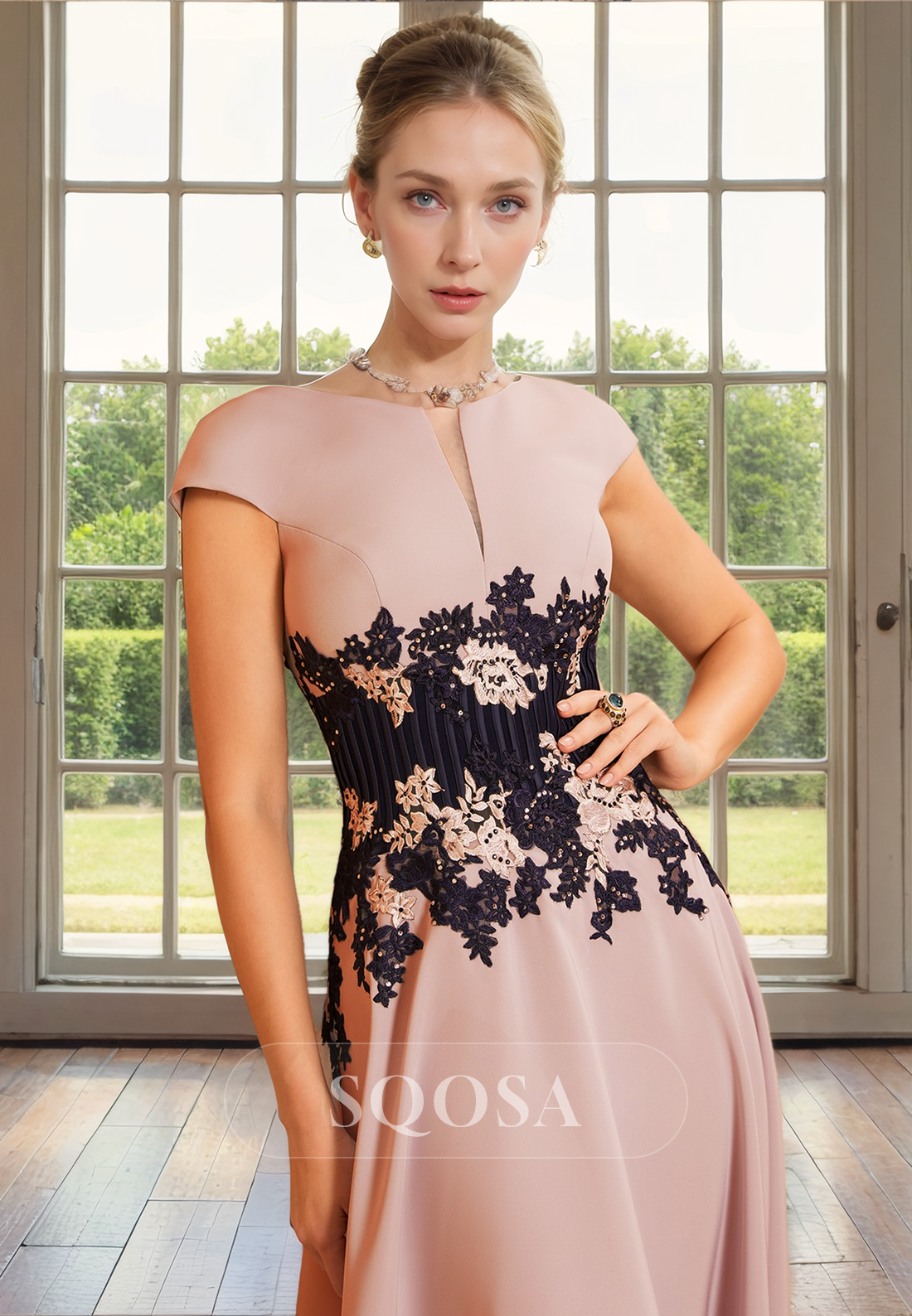 A Line Scoop Short Sleeves Lace Appliques Elegant Mother of the Bride Dress with Jacket