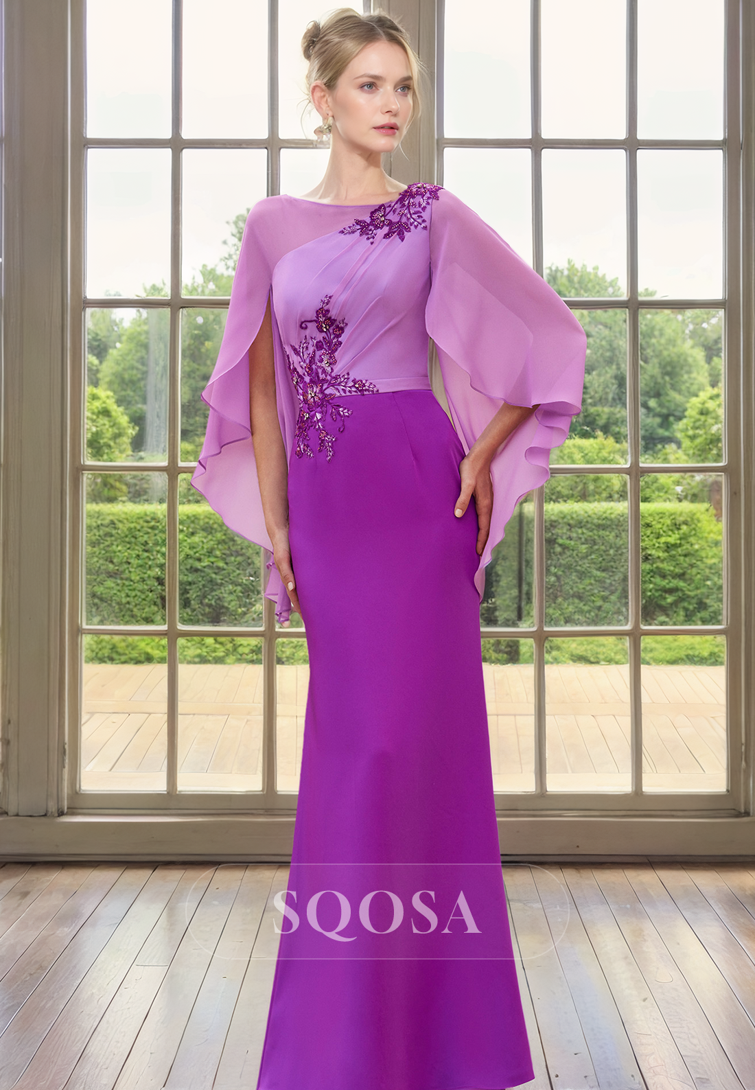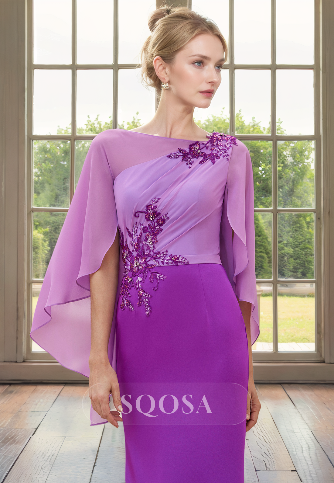Sheath Batwing Sleeves Appliques Elegant Mother of the Bride Dress
