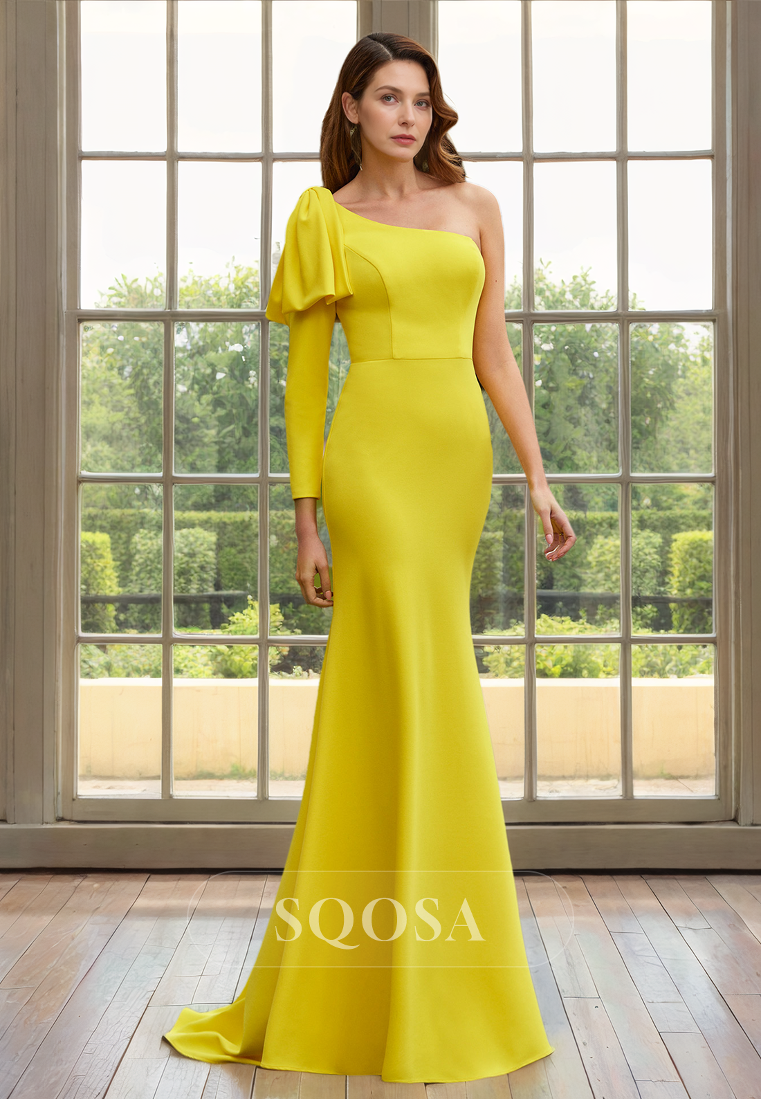 Sheath One Shoulder Long Sleeves Elegant Mother of the Bride Dress Long Cocktail Dress x 1;