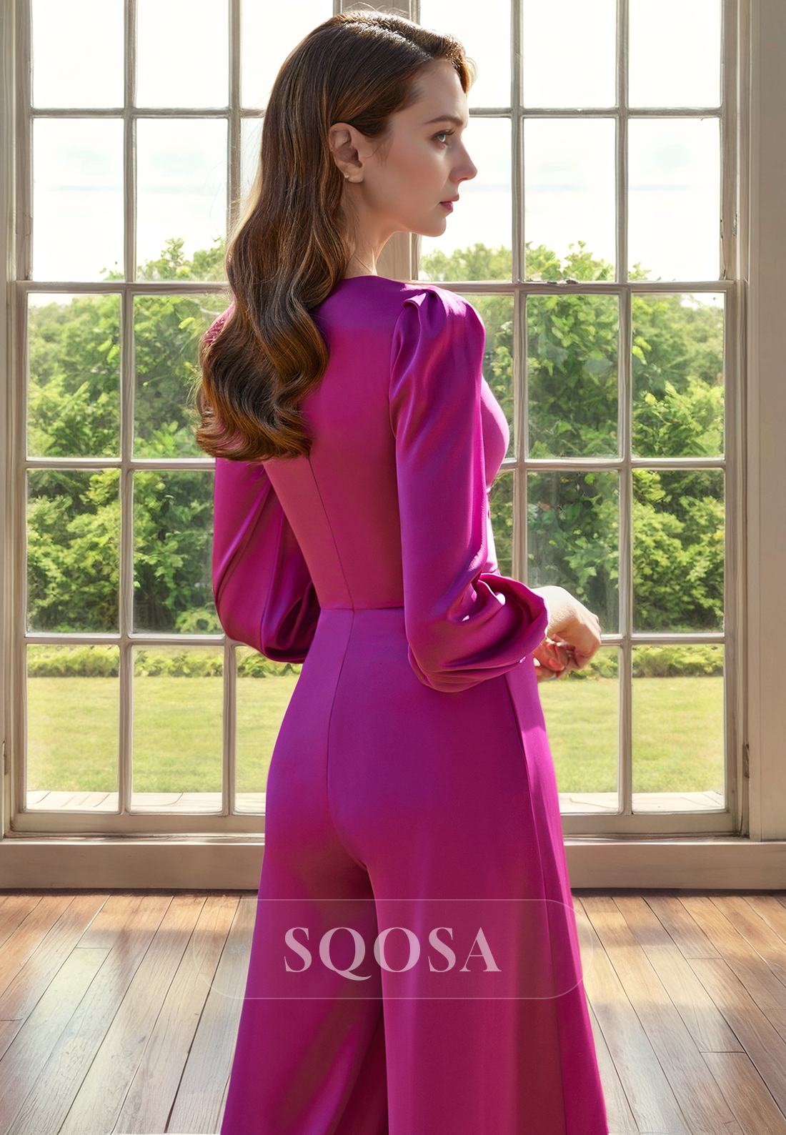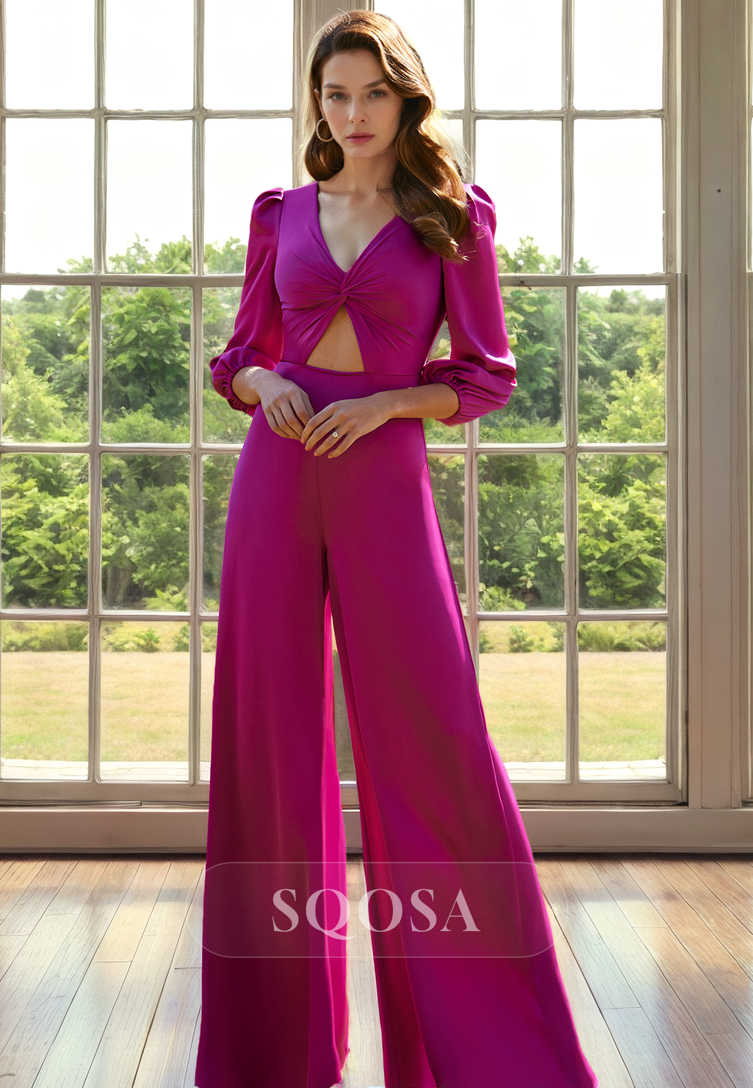 Sexy V Neck Long Sleeves Elegant Mother of the Bride Dress Pant Suits Cocktail Dress