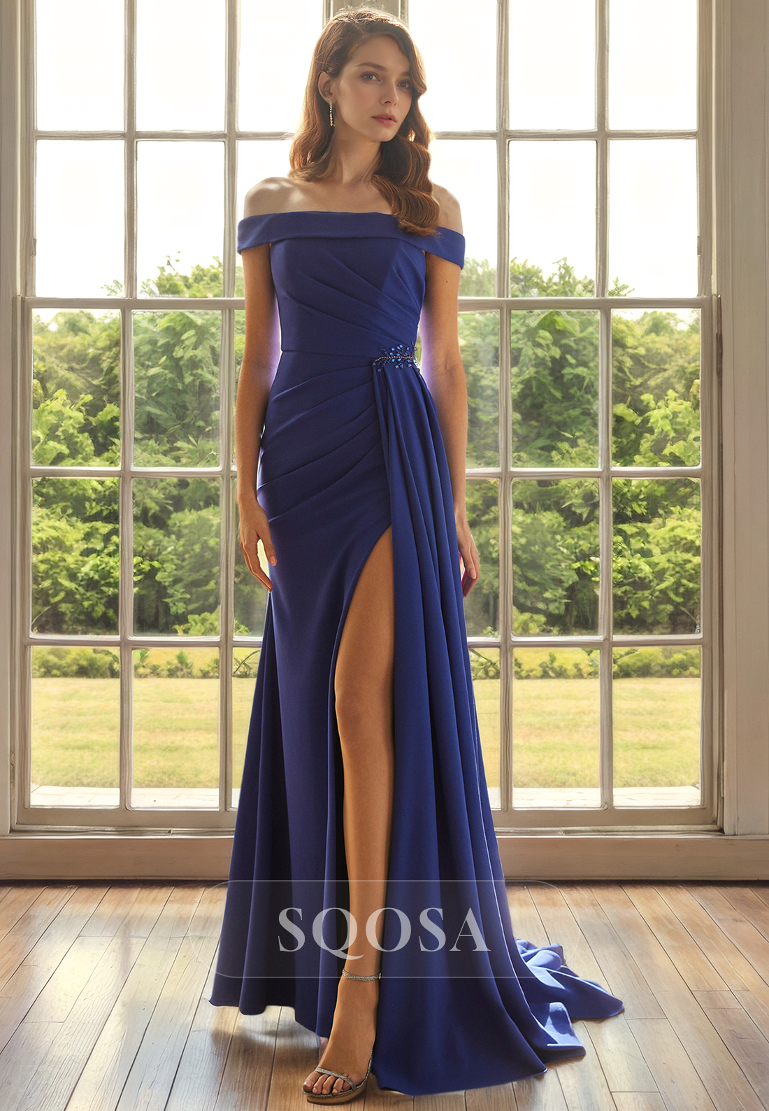 Sheath Off Shoulder Pleats Elegant Mother of the Bride Dress for Wedding Long Cocktail Dress