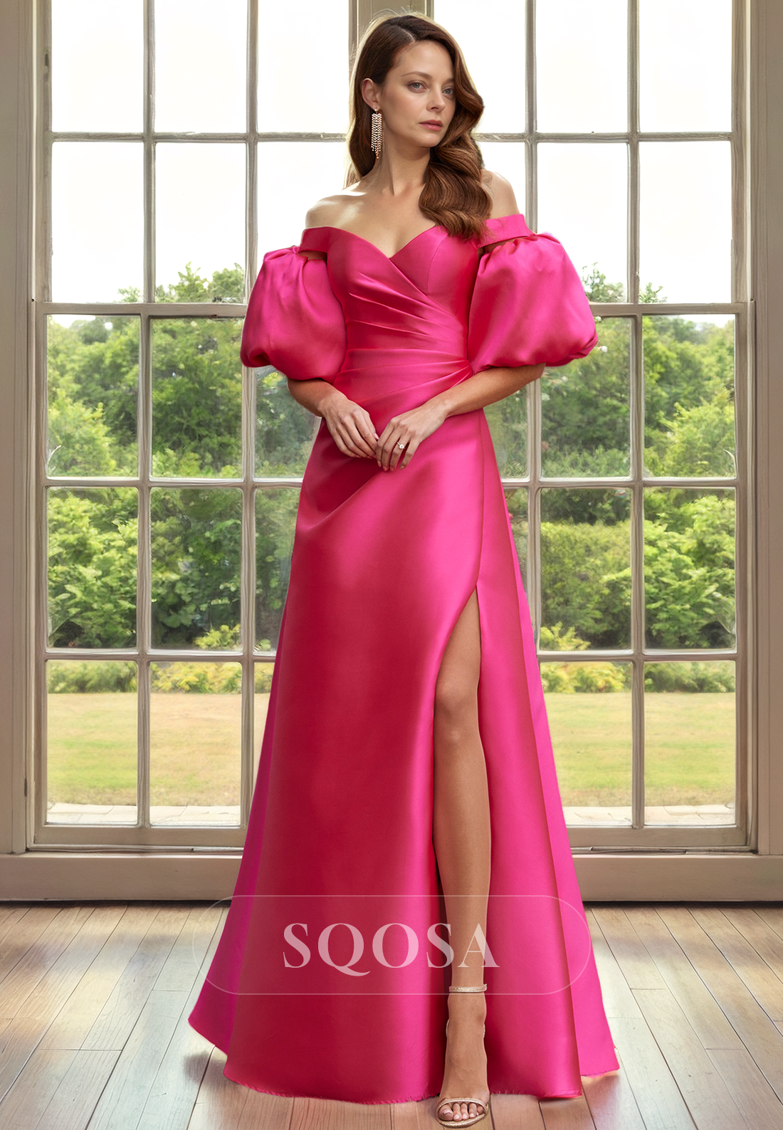 Sheath Off Shoulder Satin Pleats Elegant Cocktail Dress for Wedding Long Mother of the Bride Dress