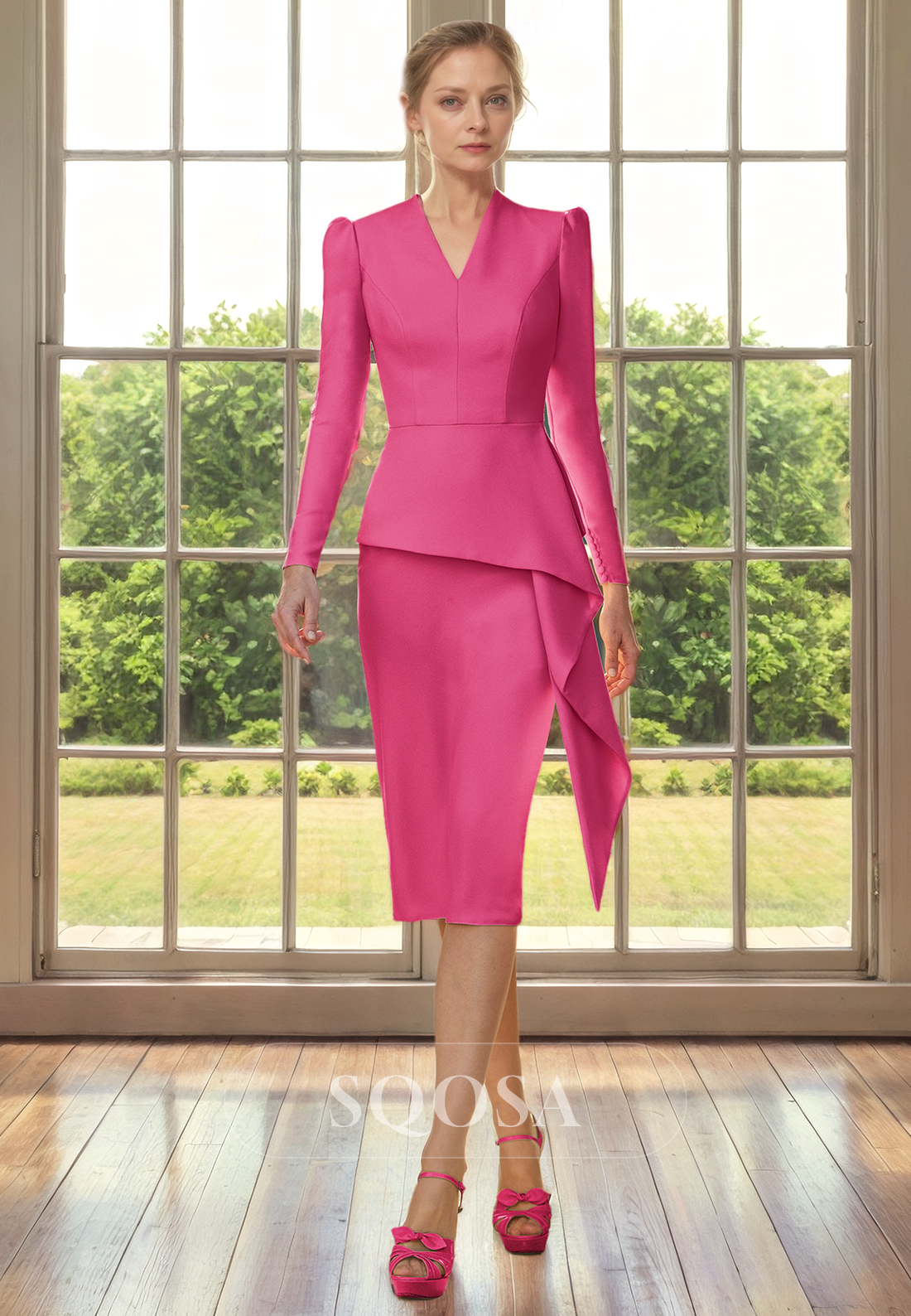 Sheath V Neck Long Sleeves Elegant Mother of the Bride Dress Short Cocktail Dress