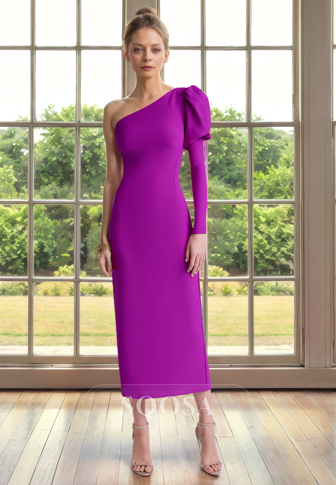 Sheath One Shoulder Long Sleeves Cocktail Dress Elegant Mother of the Bride Dress