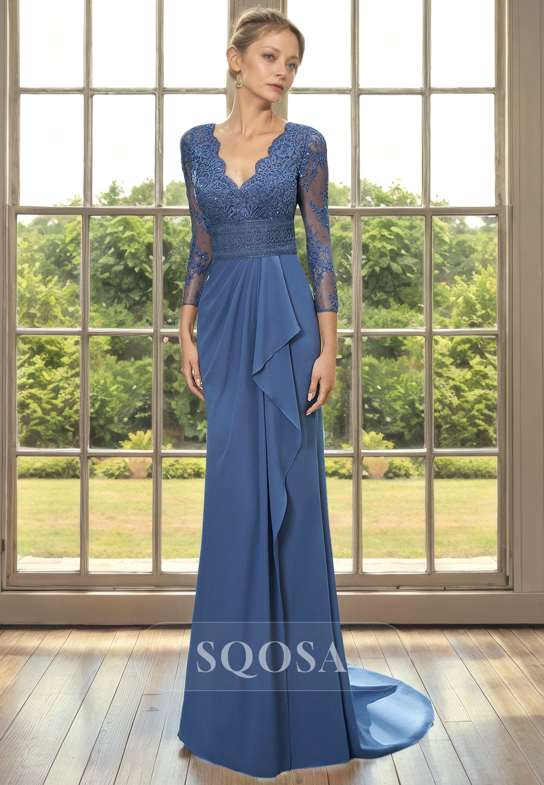 Sheath V Neck Lace Appliques 3/4 Sleeves Mother of the Bride Dress Elegant Cocktail Dress