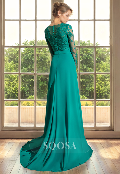 Sheath V Neck Lace Long Sleeves Cocktail Dress for Wedding Elegant Mother of the Bride Dress
