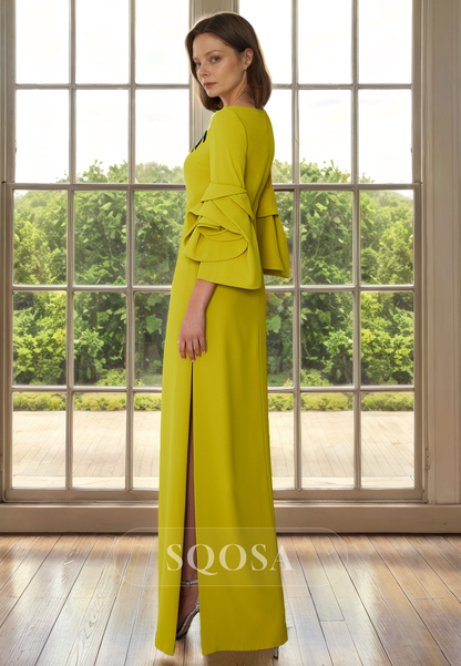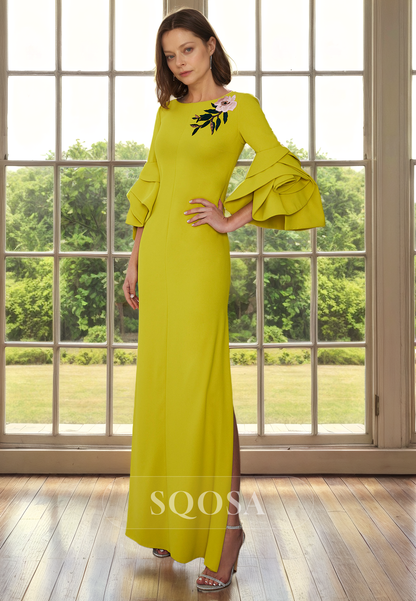 Sheath Unique Embroidery 3/4 Sleeves Mother of the Bride Dress for Wedding