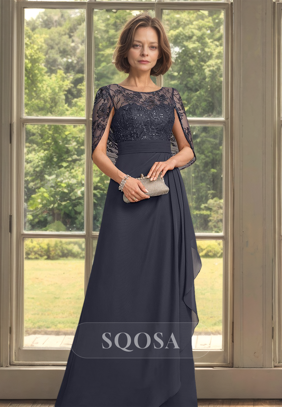 This Sleeveless Scoop-Neck A-Line Mother of the Bride Dress is both elegant and stylish. The pleated details and beaded applique add a touch of sophistication, while the A-line silhouette flatters any body type. Perfect for a mother of the bride looking for a chic and comfortable cocktail gown.