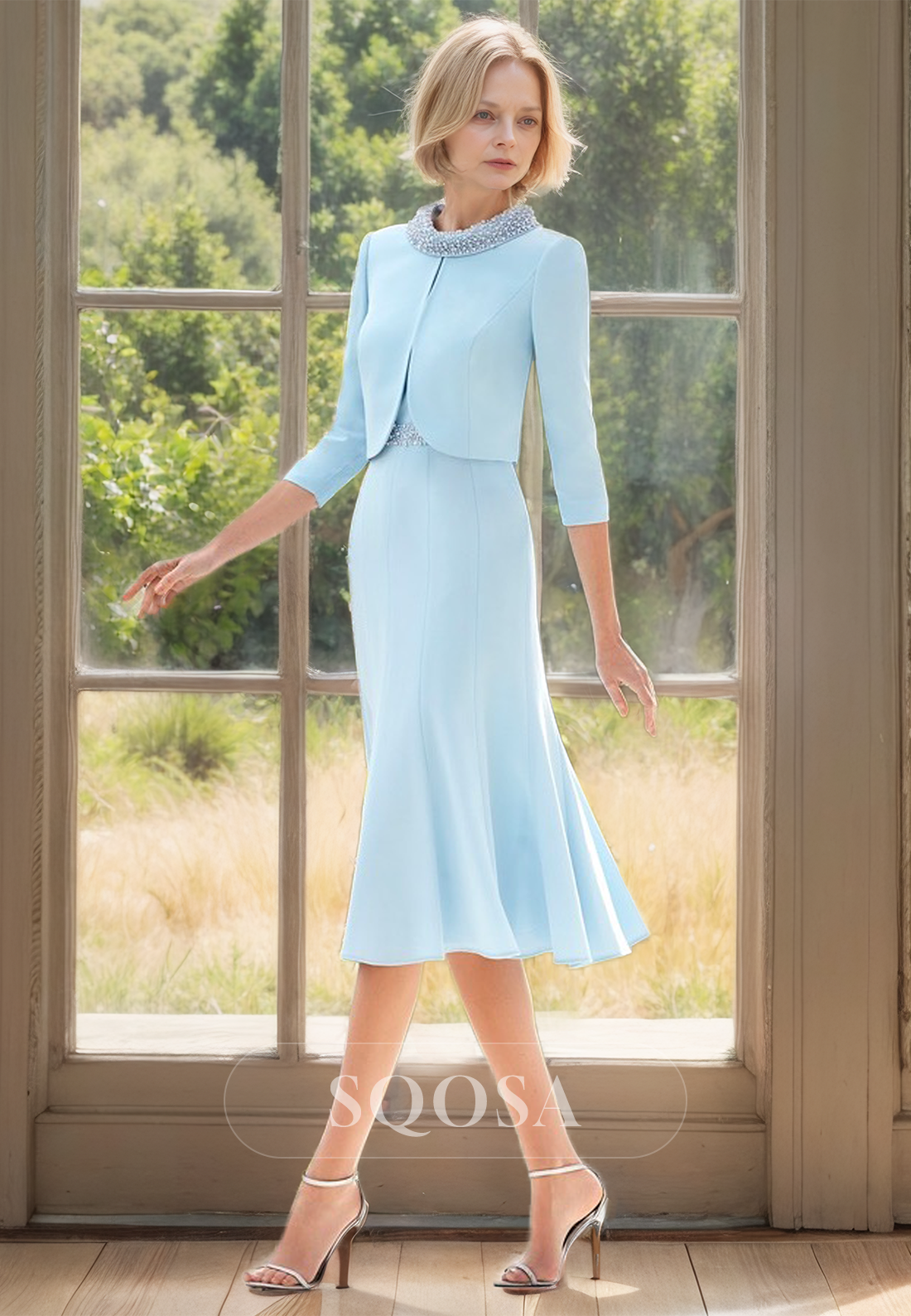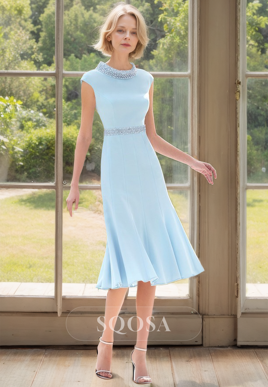 High Scoop-Neck Sleeveless Chiffon Cocktail Gowns Beaded Knee-Length A-Line Mother of the Bride Dress