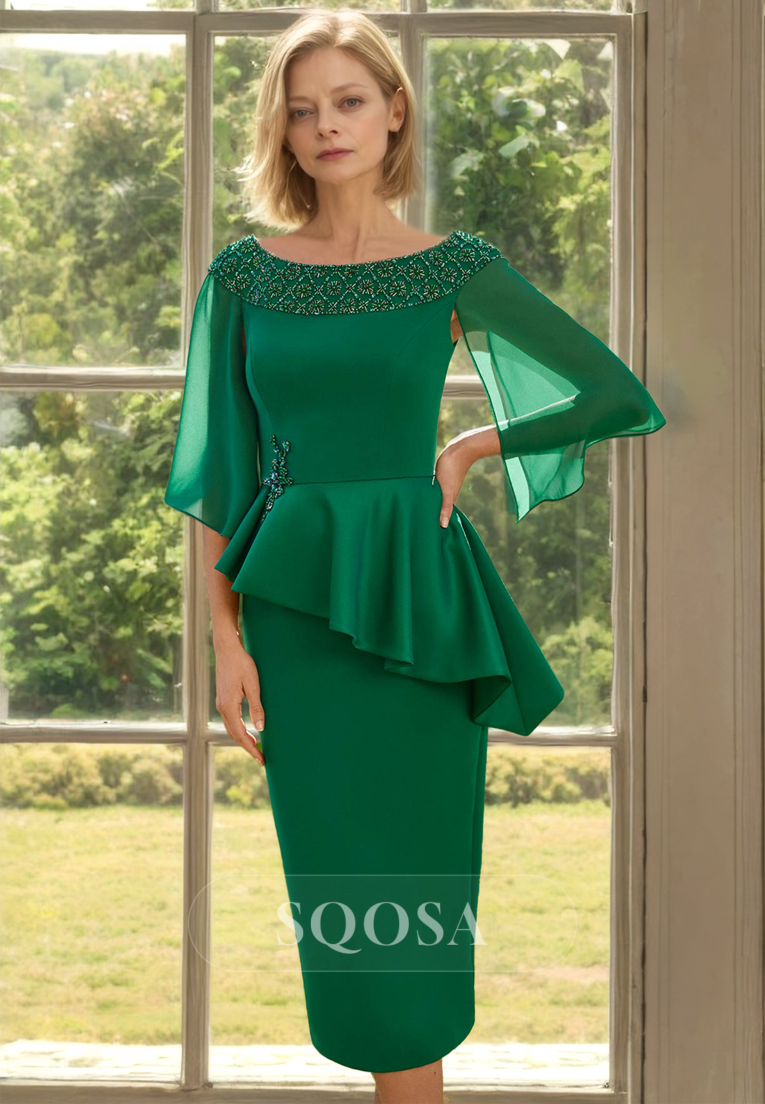 Scoop-Neck Sleeveless Midi Mermaid Mother of the Bride Dress Beaded Chiffon Cocktail Gowns