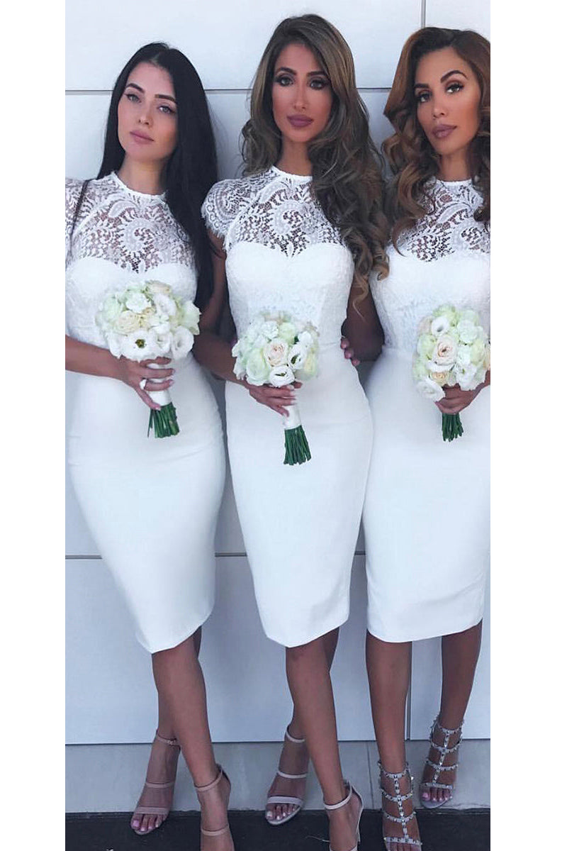 Chic Jewel Illusion Lace Mermaid Short Bridesmaid Dress