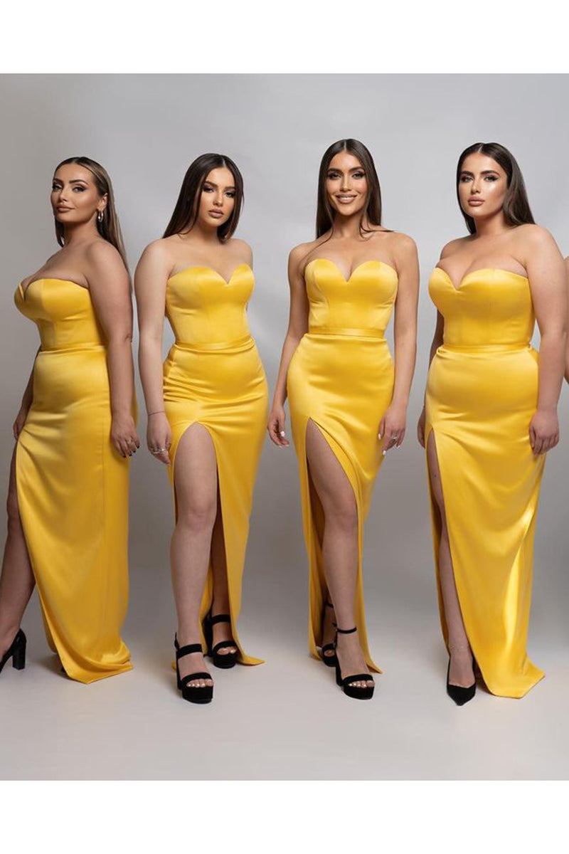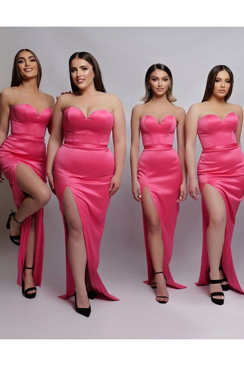 Sheath Sweetheart Satin Pleated Side Slit Long Bridesmaid Dress