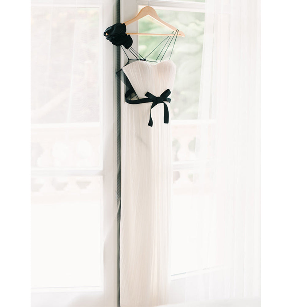 A Line V neck White and Black Plus Size Long Bridesmaid Dress QB3093