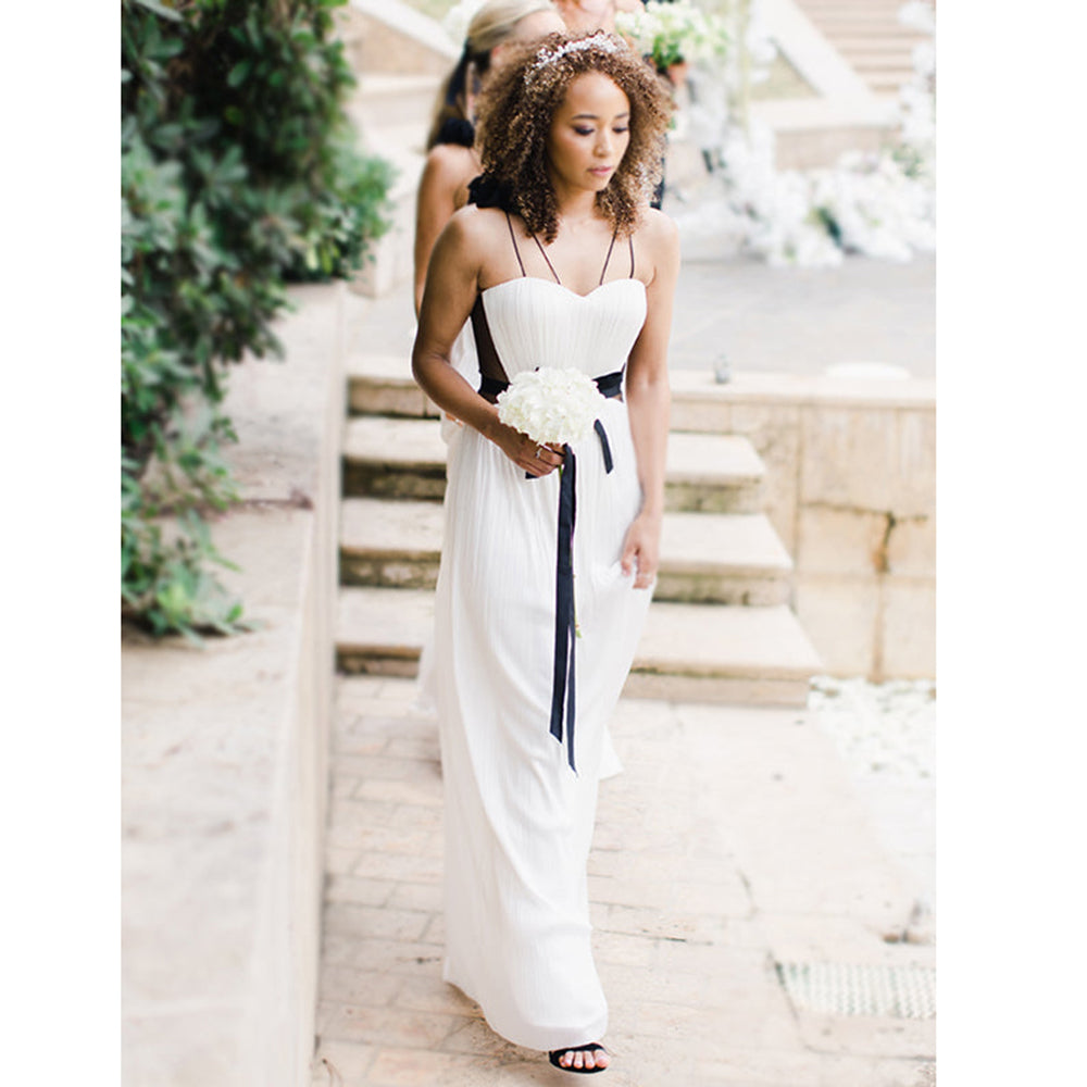 A Line V neck White and Black Plus Size Long Bridesmaid Dress