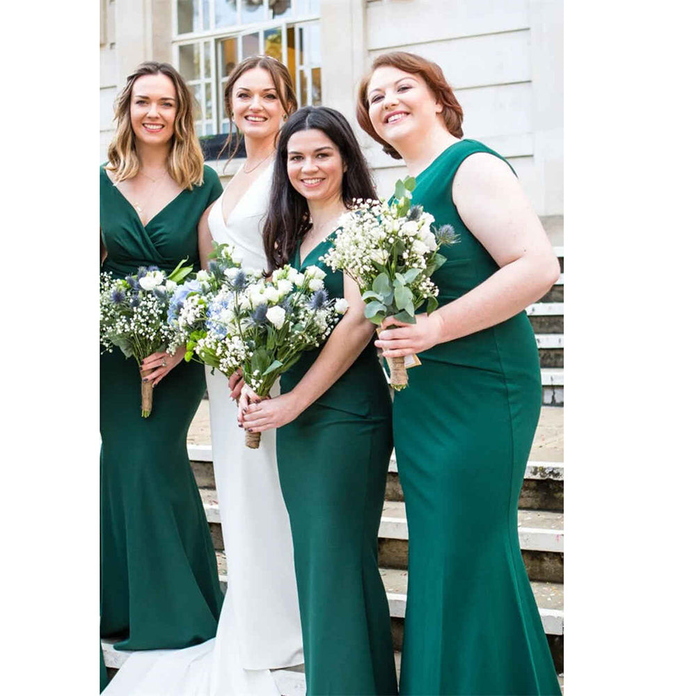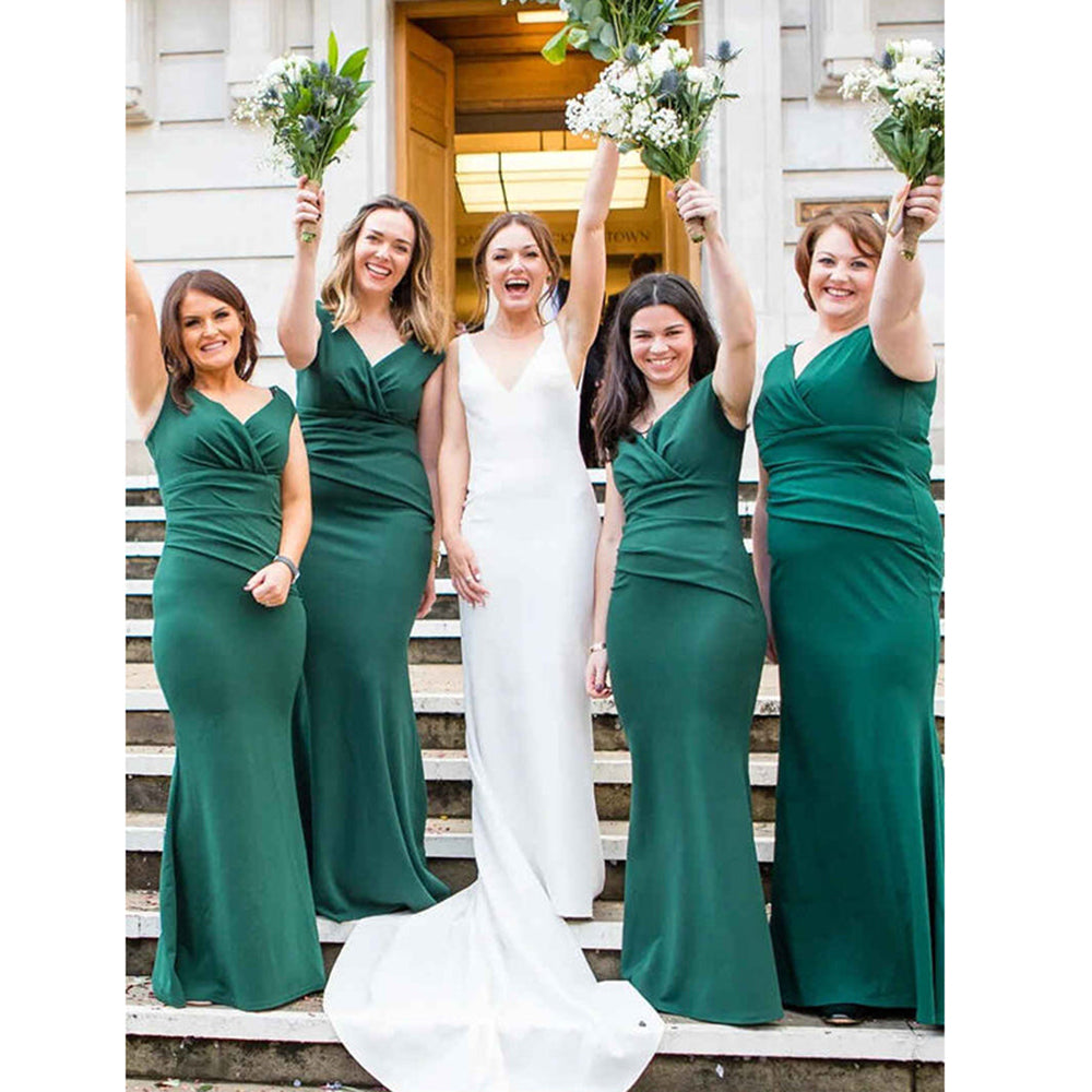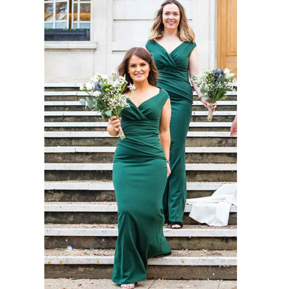 Sexy V Neck Green Mermaid Long Bridesmaid Dress