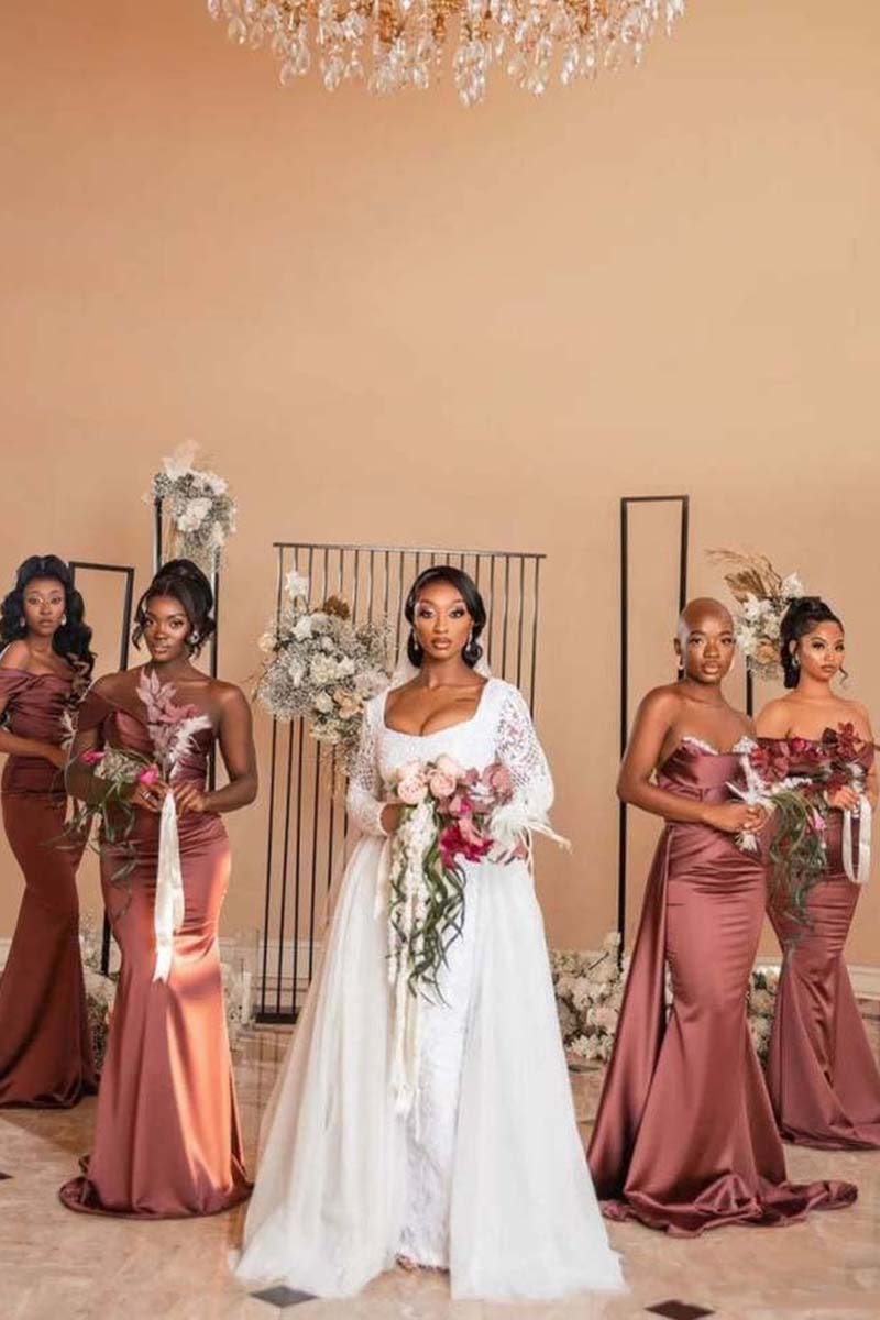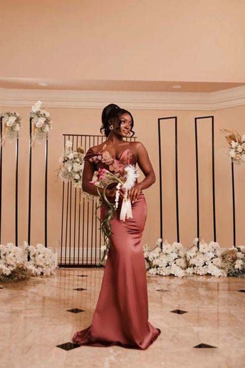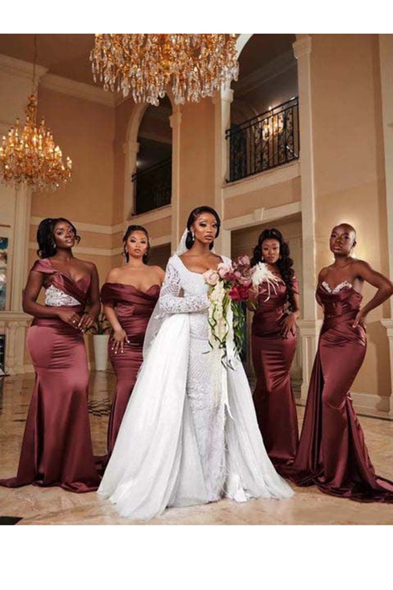 Mismatched Satin Pleated Long Mermaid Bridemaid Dress