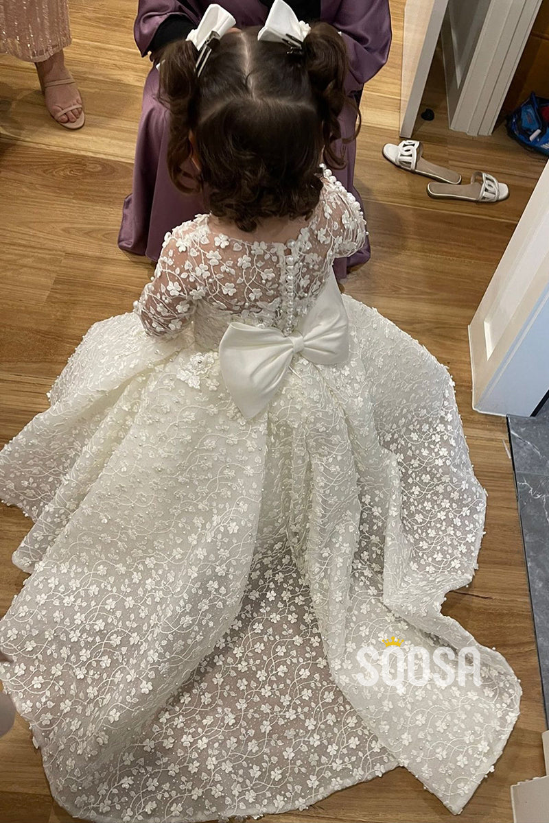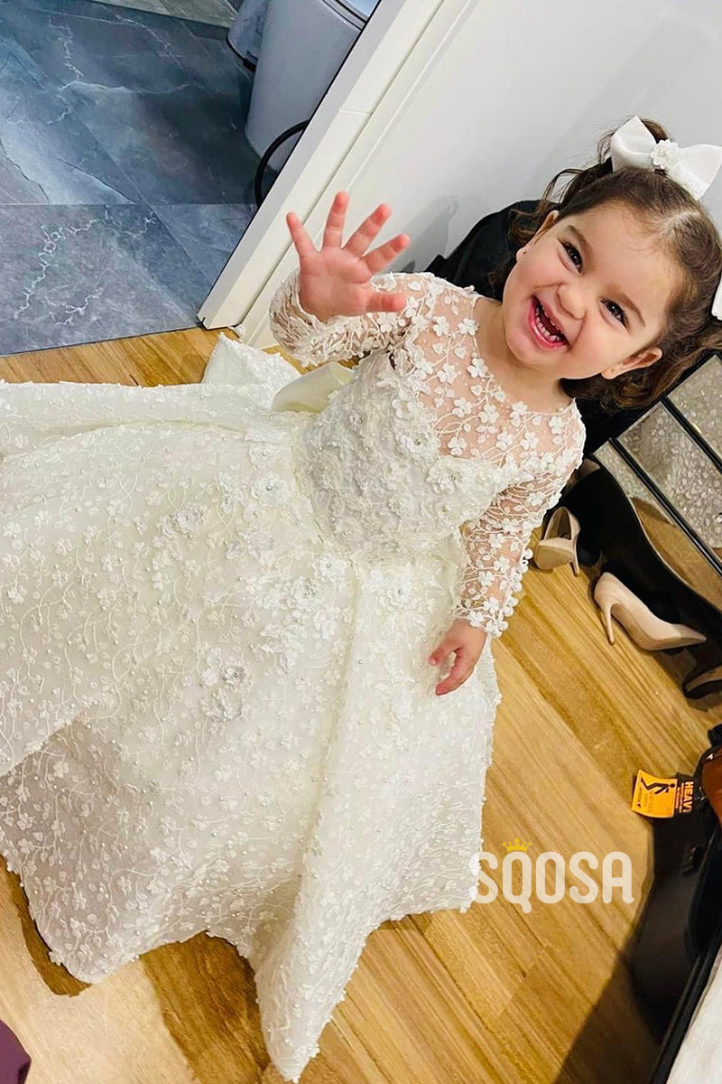 Ball Gown Scoop Long Sleeves Lace Flower Girl Dress Cute First Communion Dress QF1025