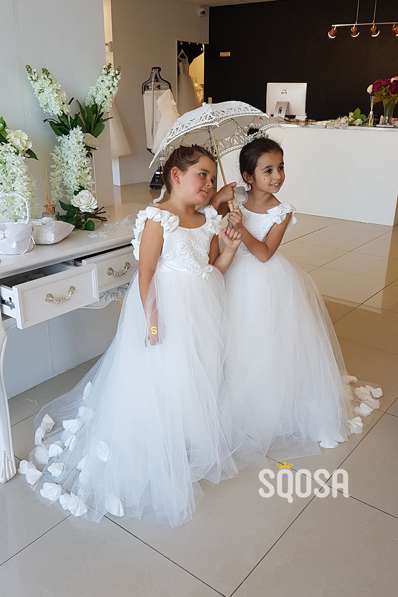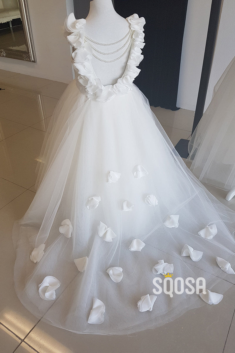 A-line Scoop 3D Flower Ivory Flower Girl Dress First Communion Dress QF1029 x 1;