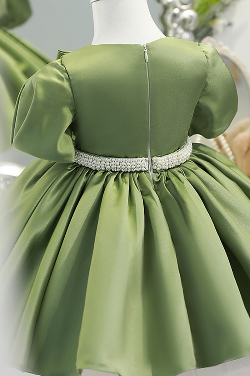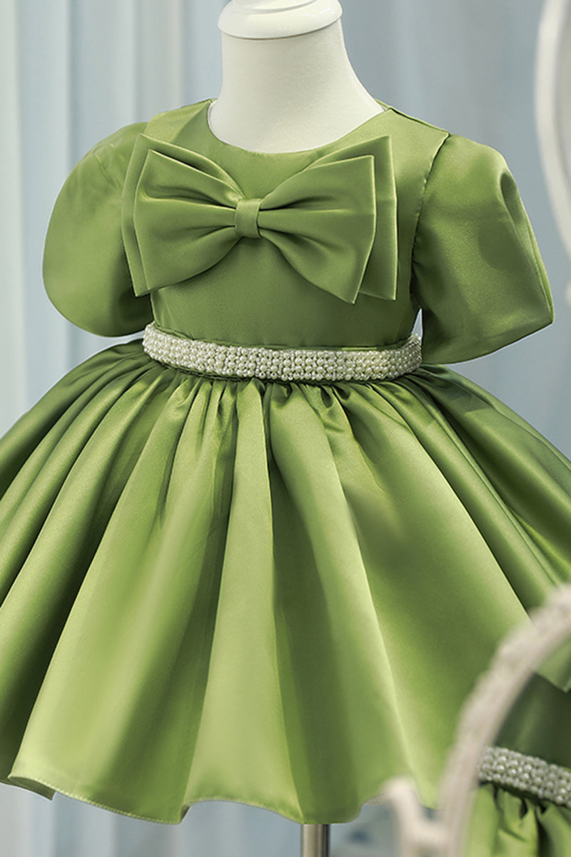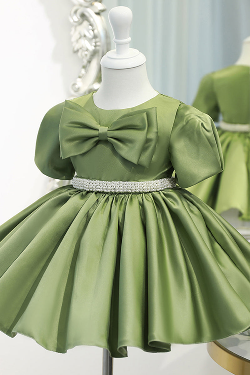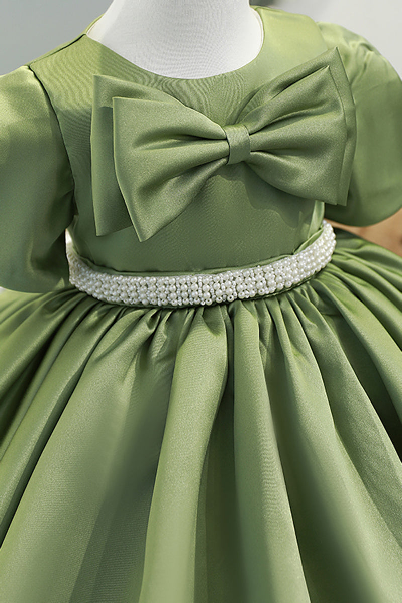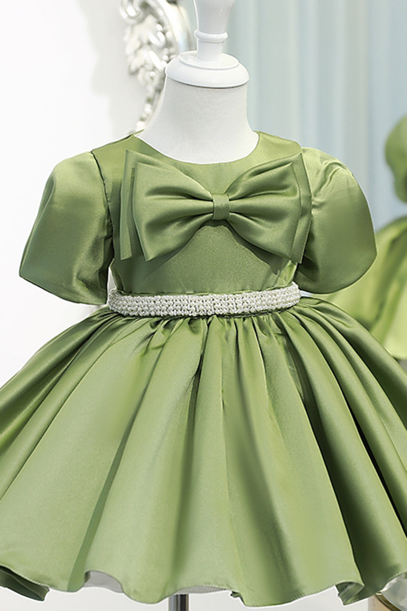 Ball Gown Green Satin Cute Flower Girl Dress Bow First Communion Dress