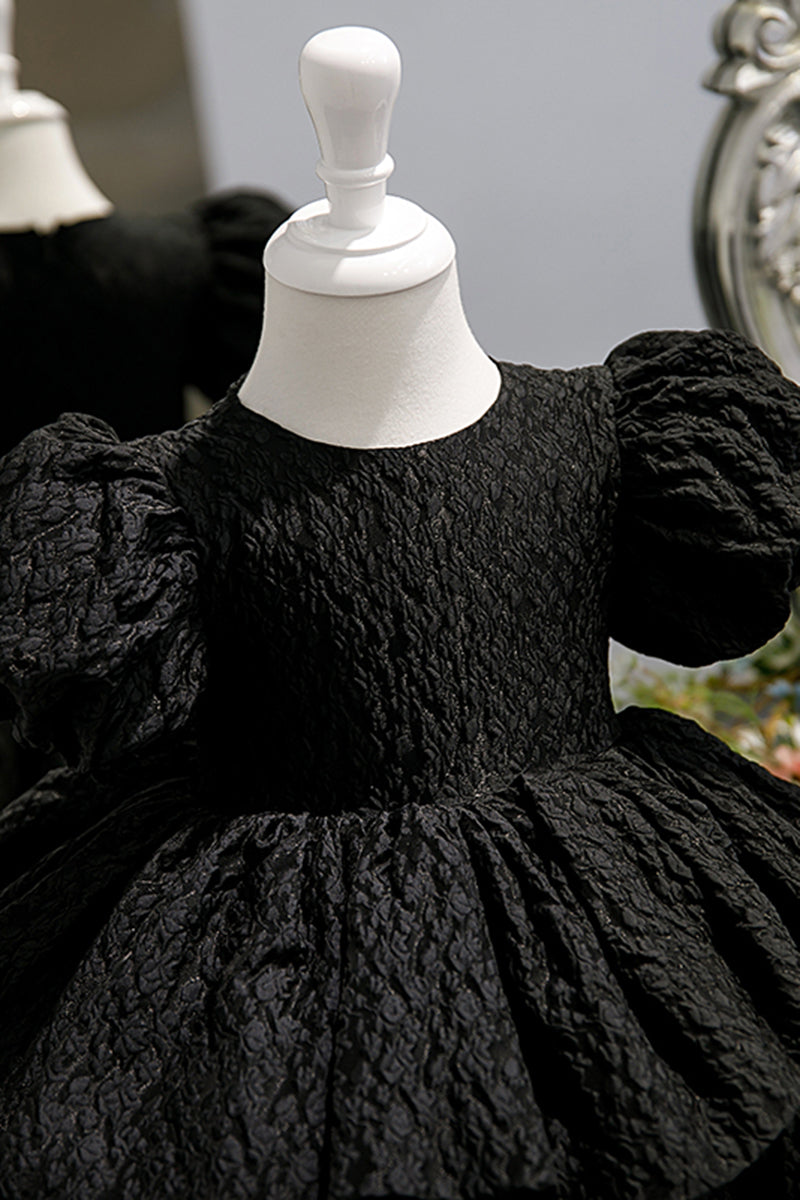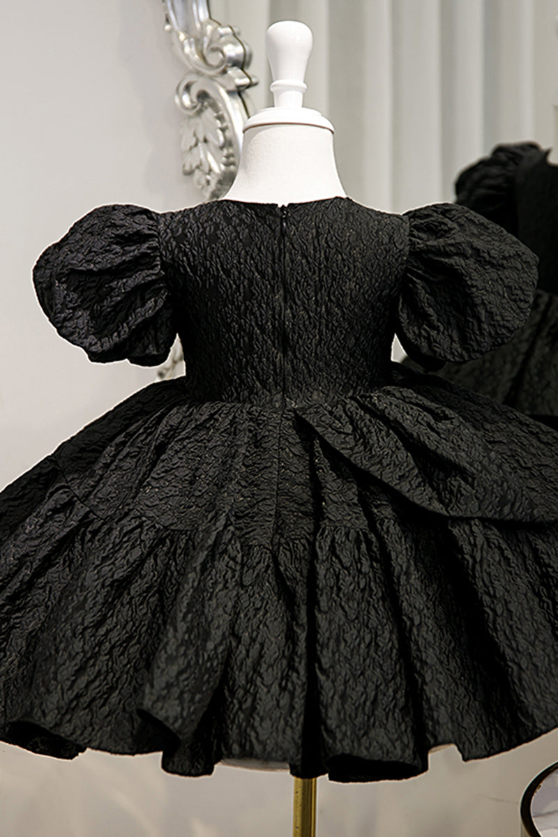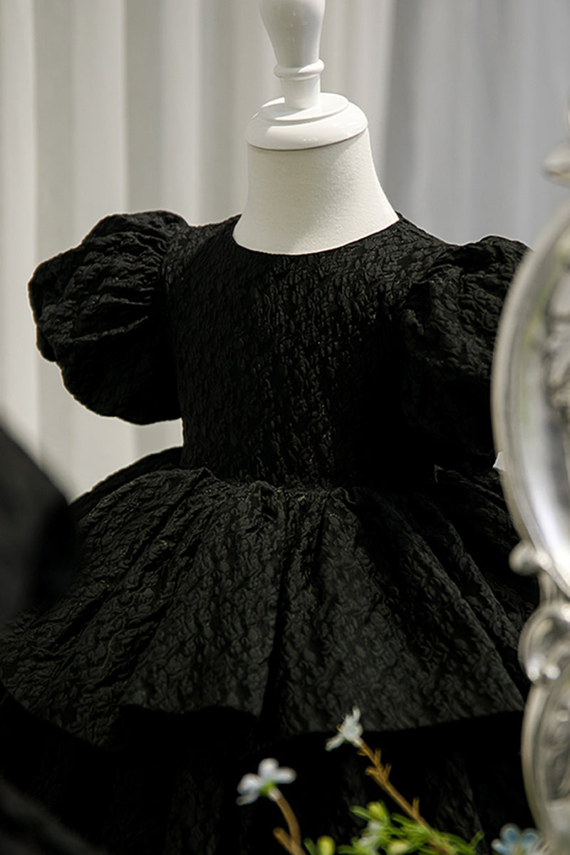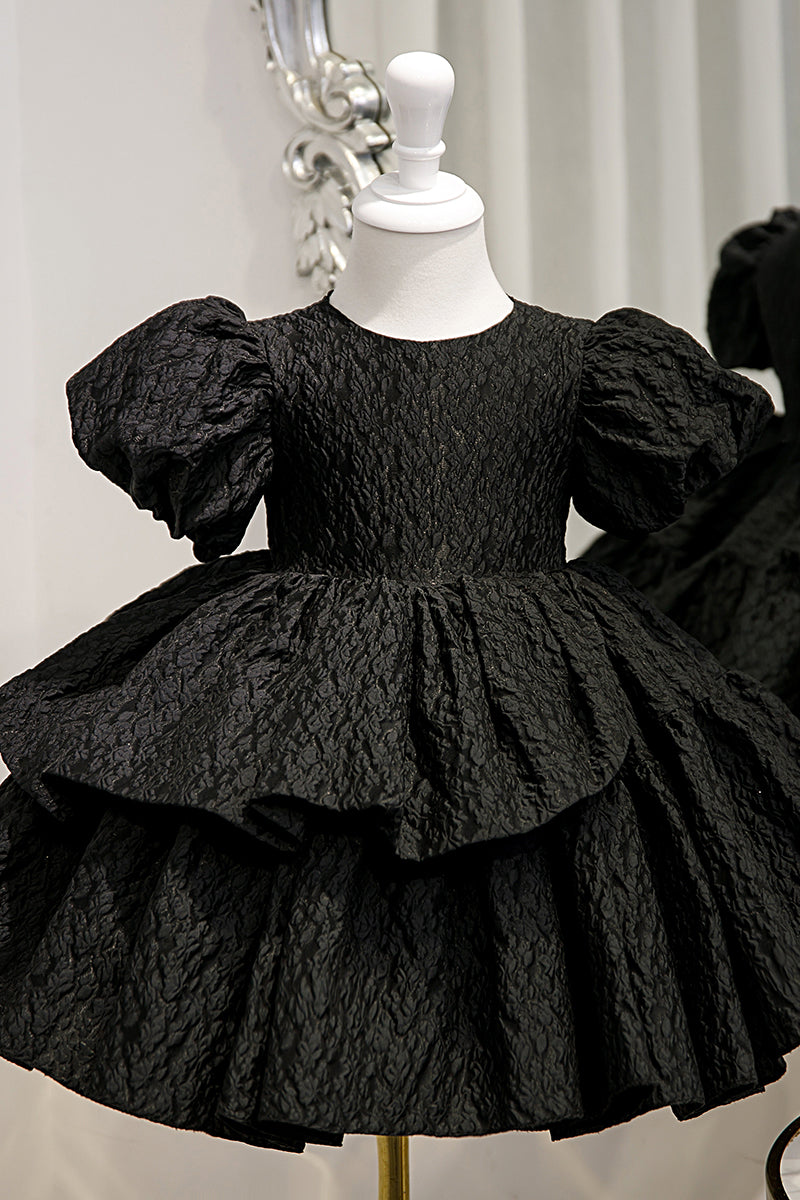 Ball Gown Short Sleeves Tiered Flower Girl Dress Black First Communion Dress