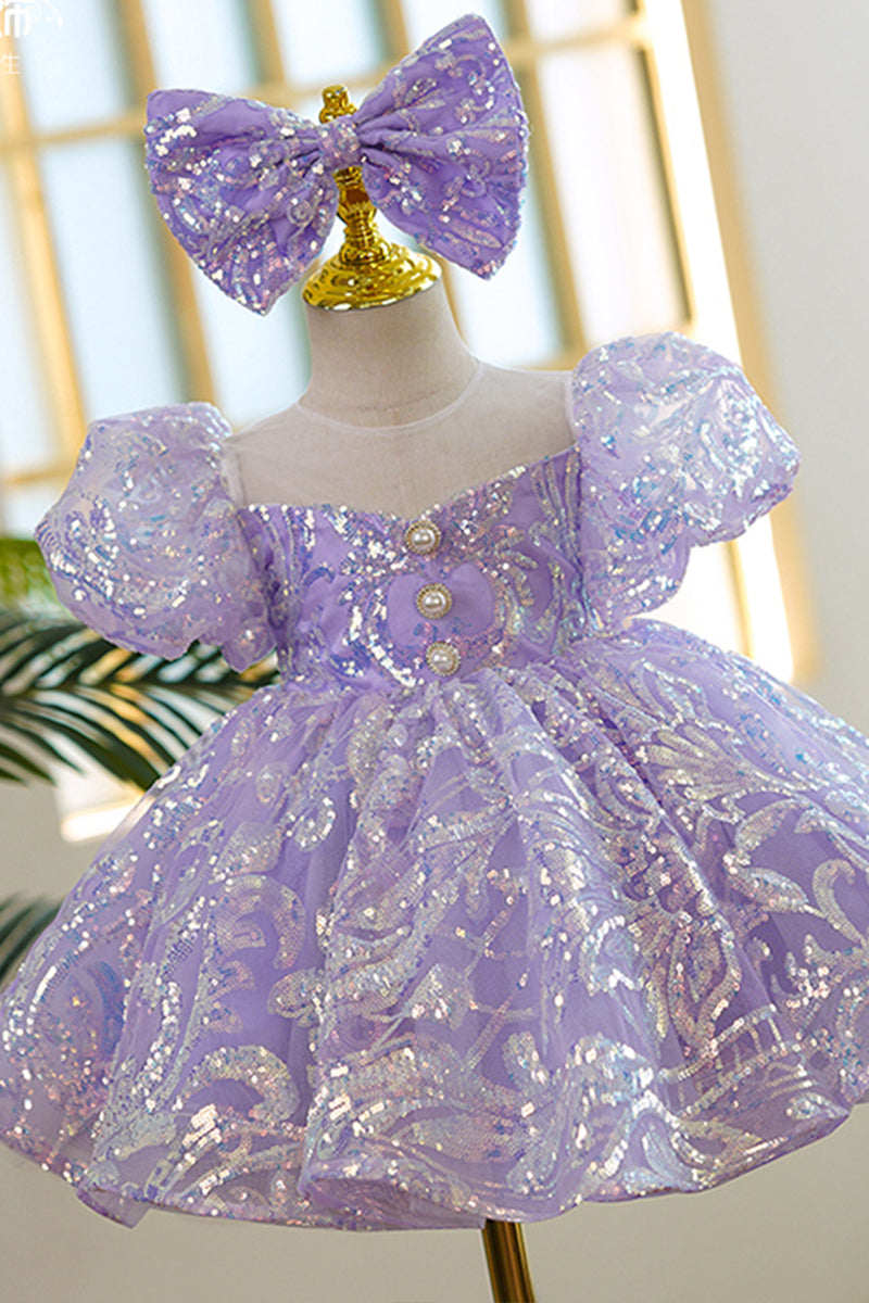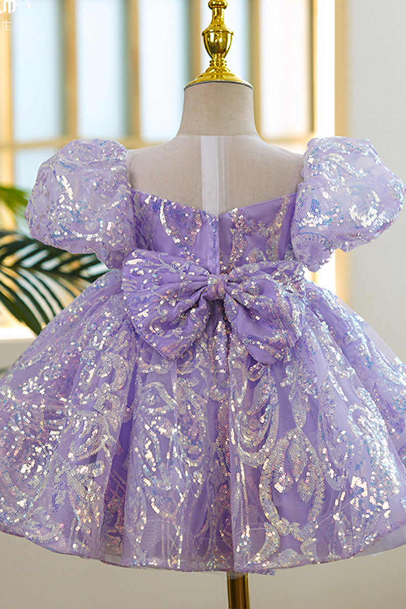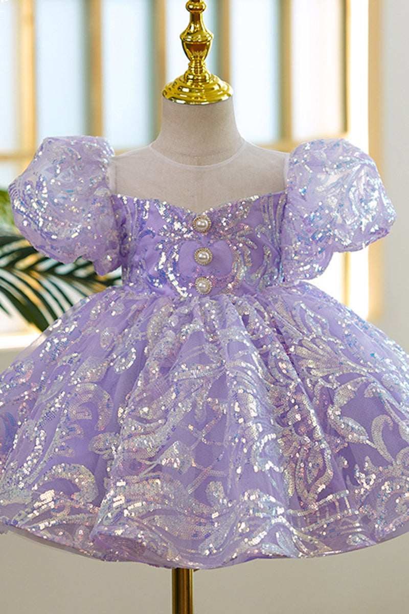 Unique Bateau Short Sleeves Sequins Flower Girl Dress Cute First Communion Dress