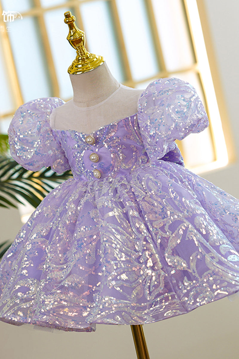 Unique Bateau Short Sleeves Sequins Flower Girl Dress Cute First Communion Dress QF1044