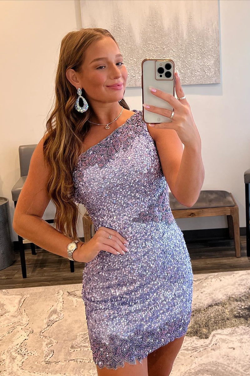 Sheath/Column One Shouler Beads Appliques Short Homeecoming Dress