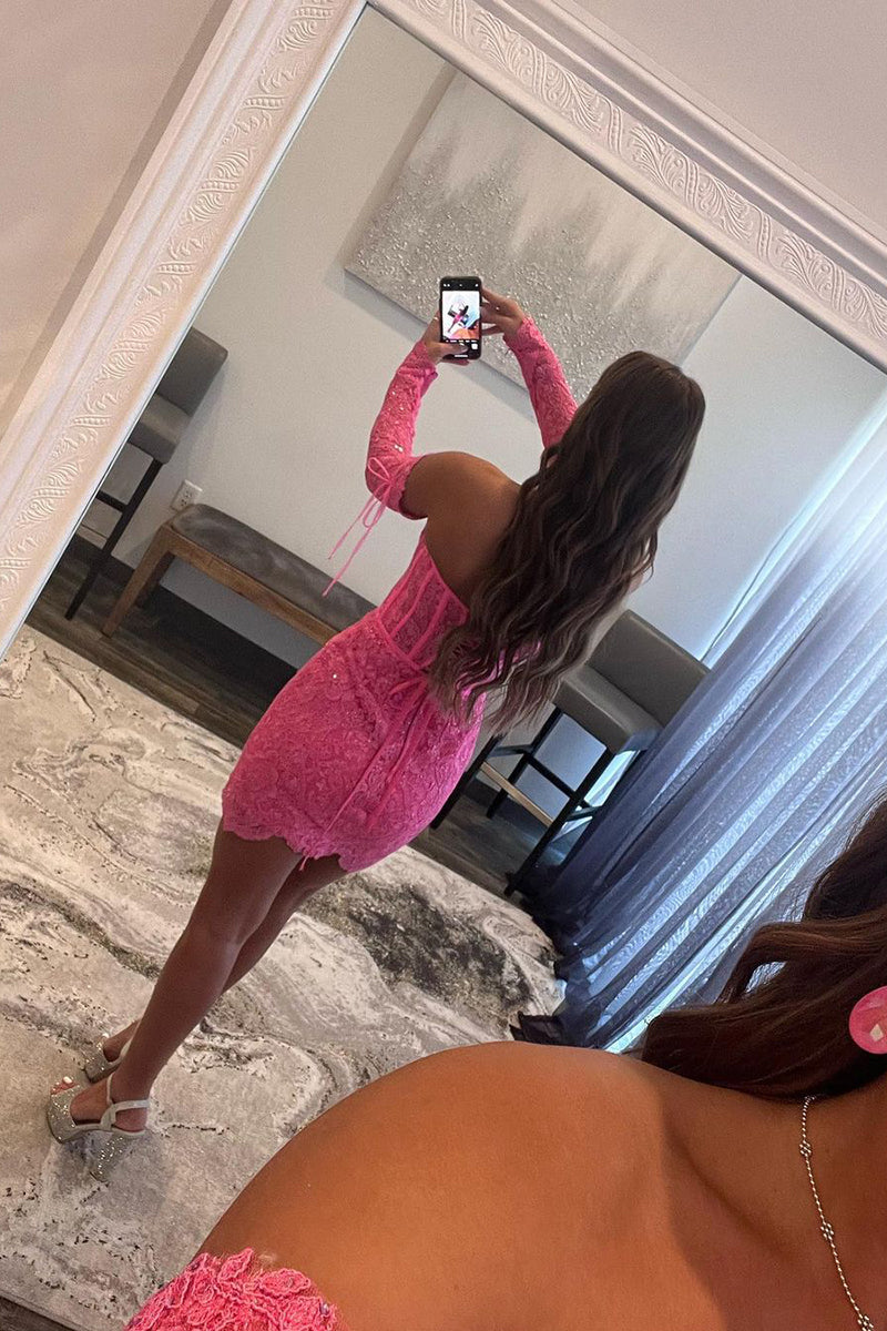 Sheath/Column Sweetheart Long Sleeves Lace Short Homecoming Dress Tight