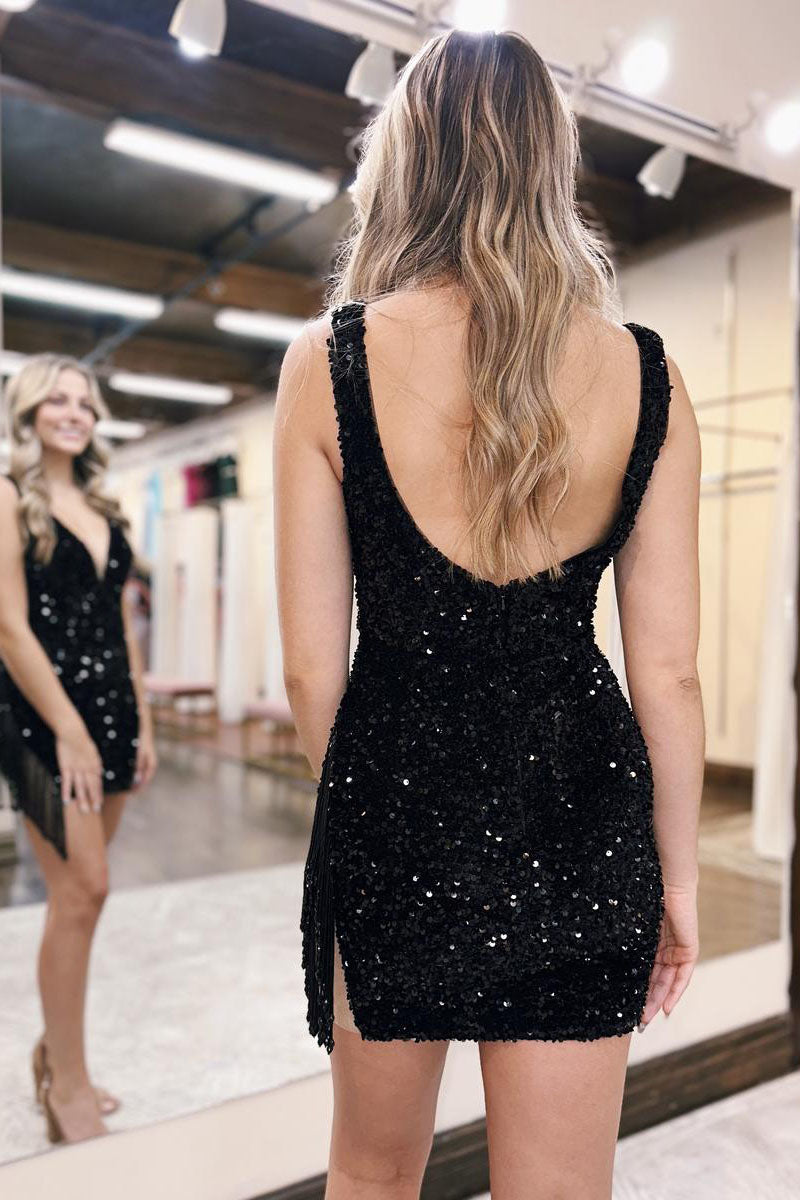 Sexy V Neck Beads Sheath Short Homecoming Dress Tight Graduation Dress