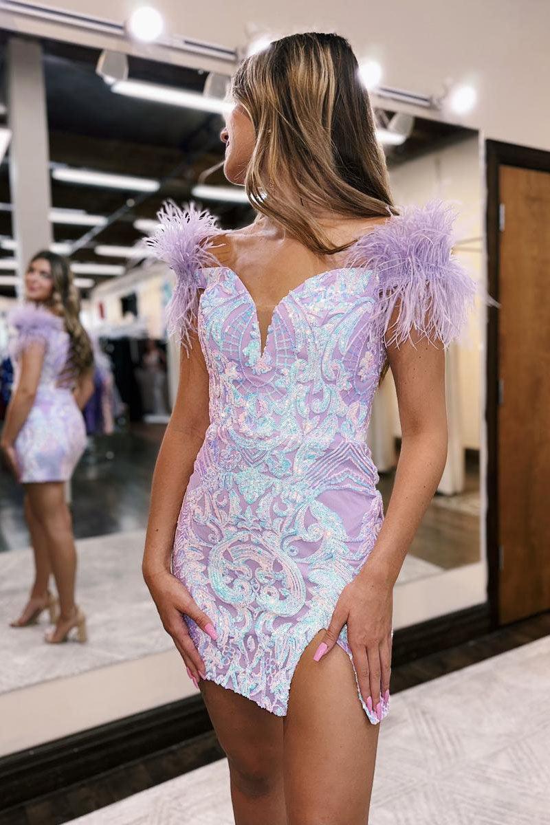 Sheath/Column V Neck Appliques Feathers Short Homecoming Dress Graduation Dress