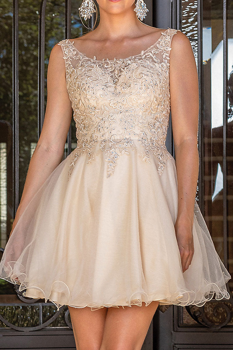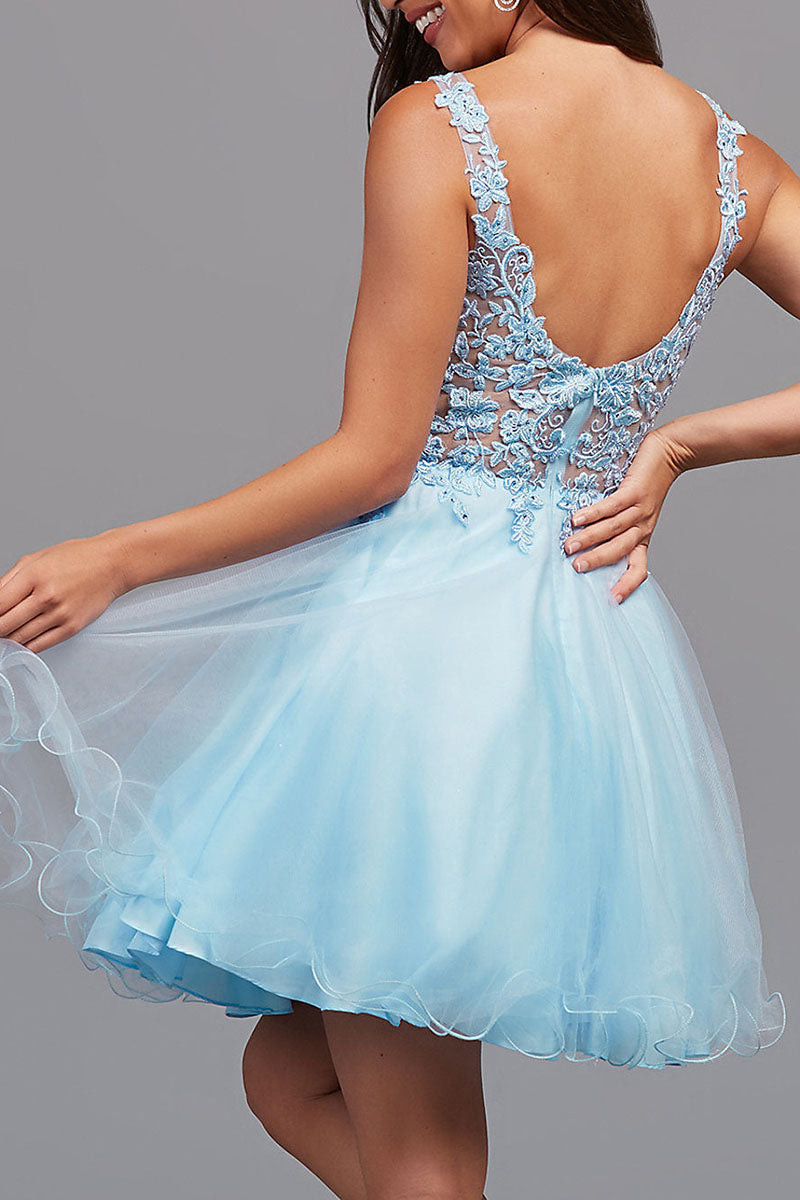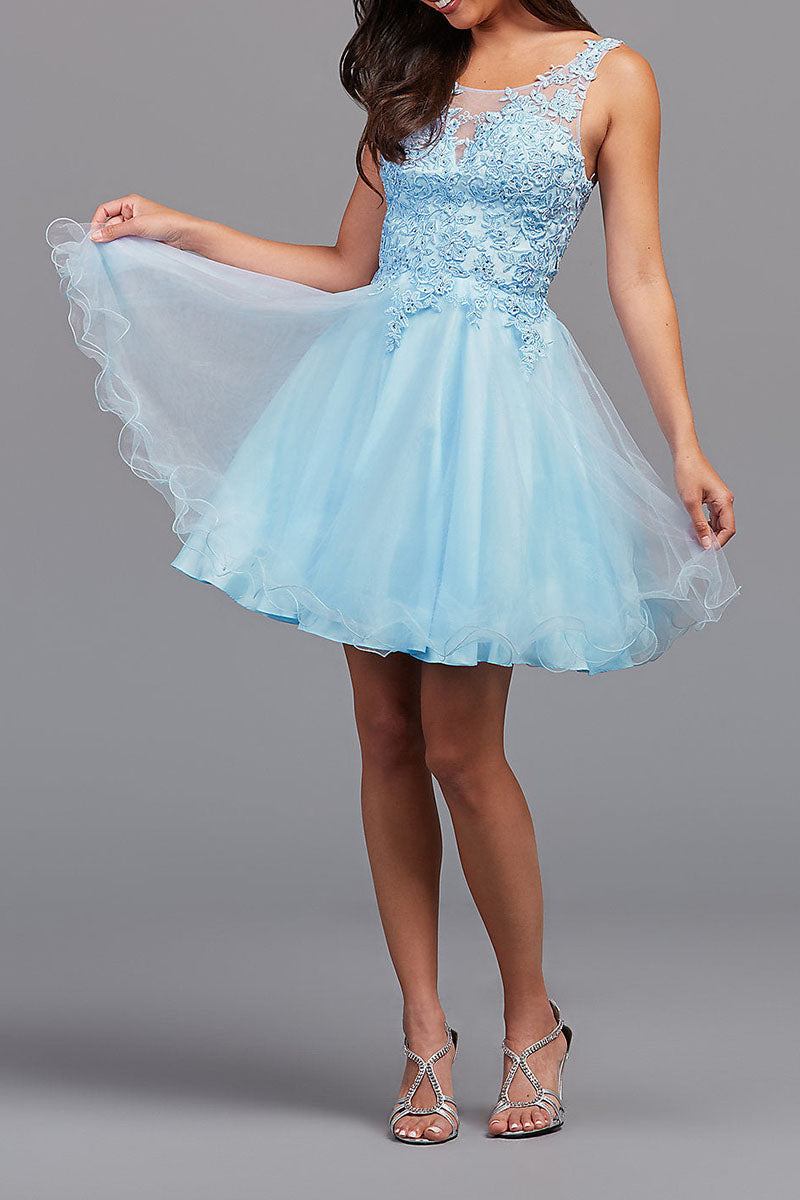 A Line Illusion Scoop Lace Appliques Cute Homecoming Dress Short Graduation Dress
