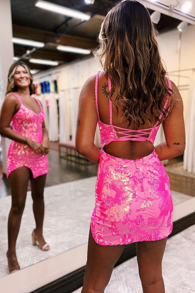Sexy Deep V neck Sequins Appliques Short Homecoming Dress Tight