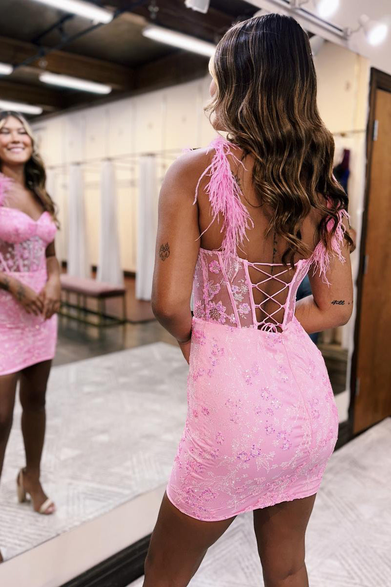 Sheath/Column Sweetheart Feathers Cute Pink Short Homecoming Dress QH2543 x 1;