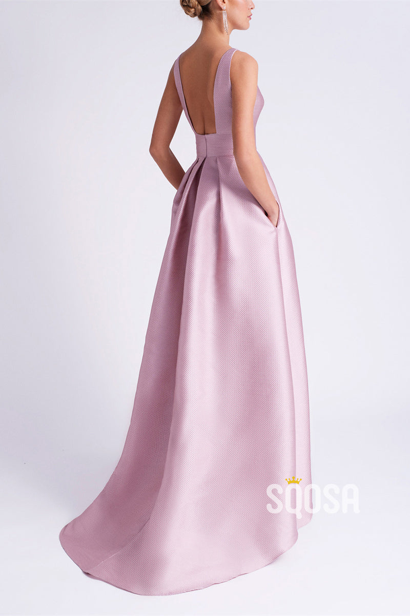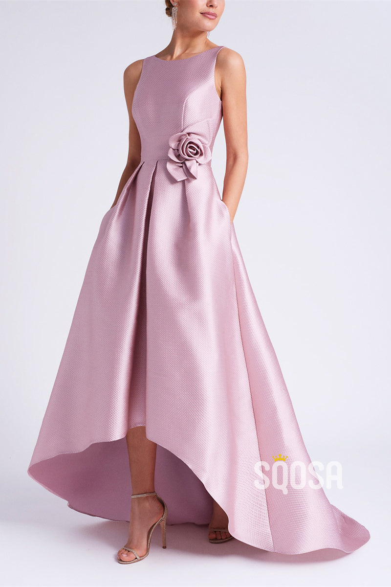 A-Line Round High Low Mother of the Bride Dress Elegant Evening Gown QM3222