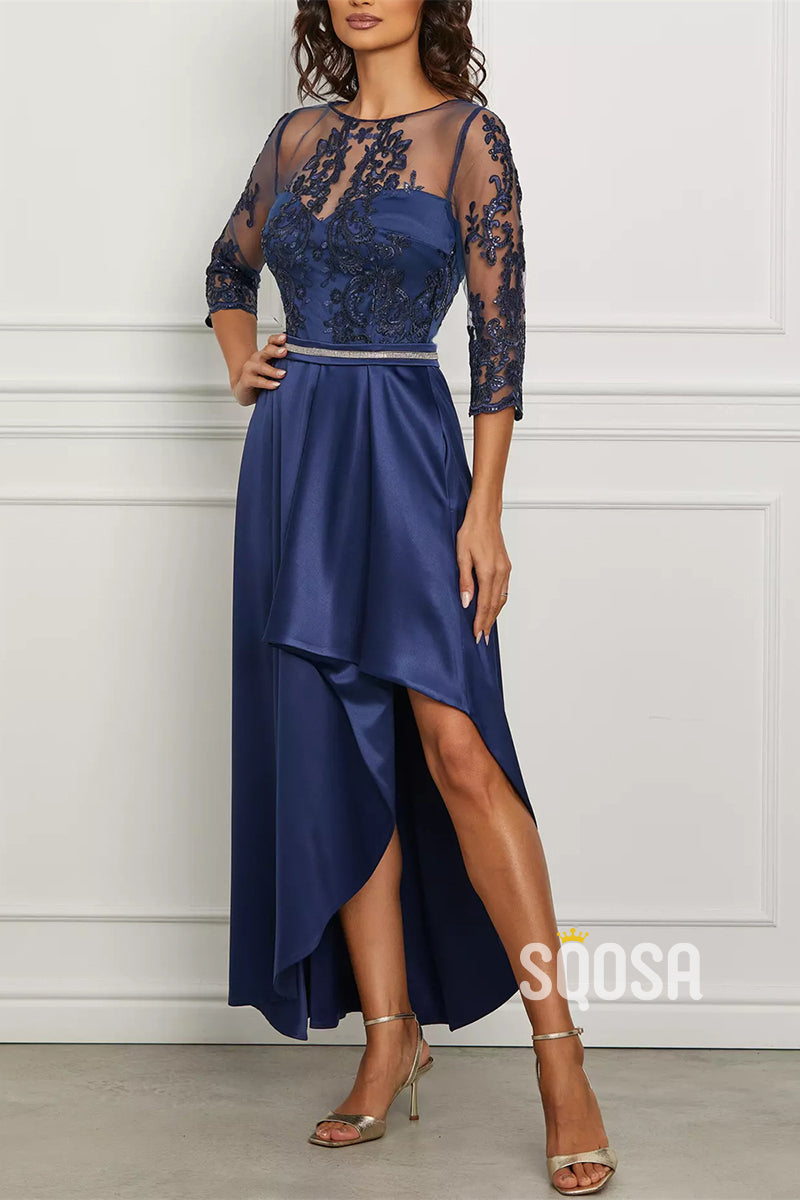 Illusion Round Applique Mother of the Bride Dress Elegant Evening Gown QM3227