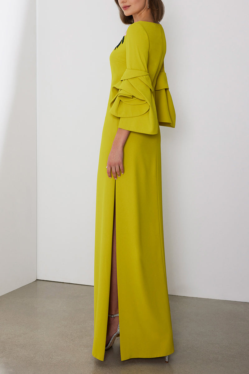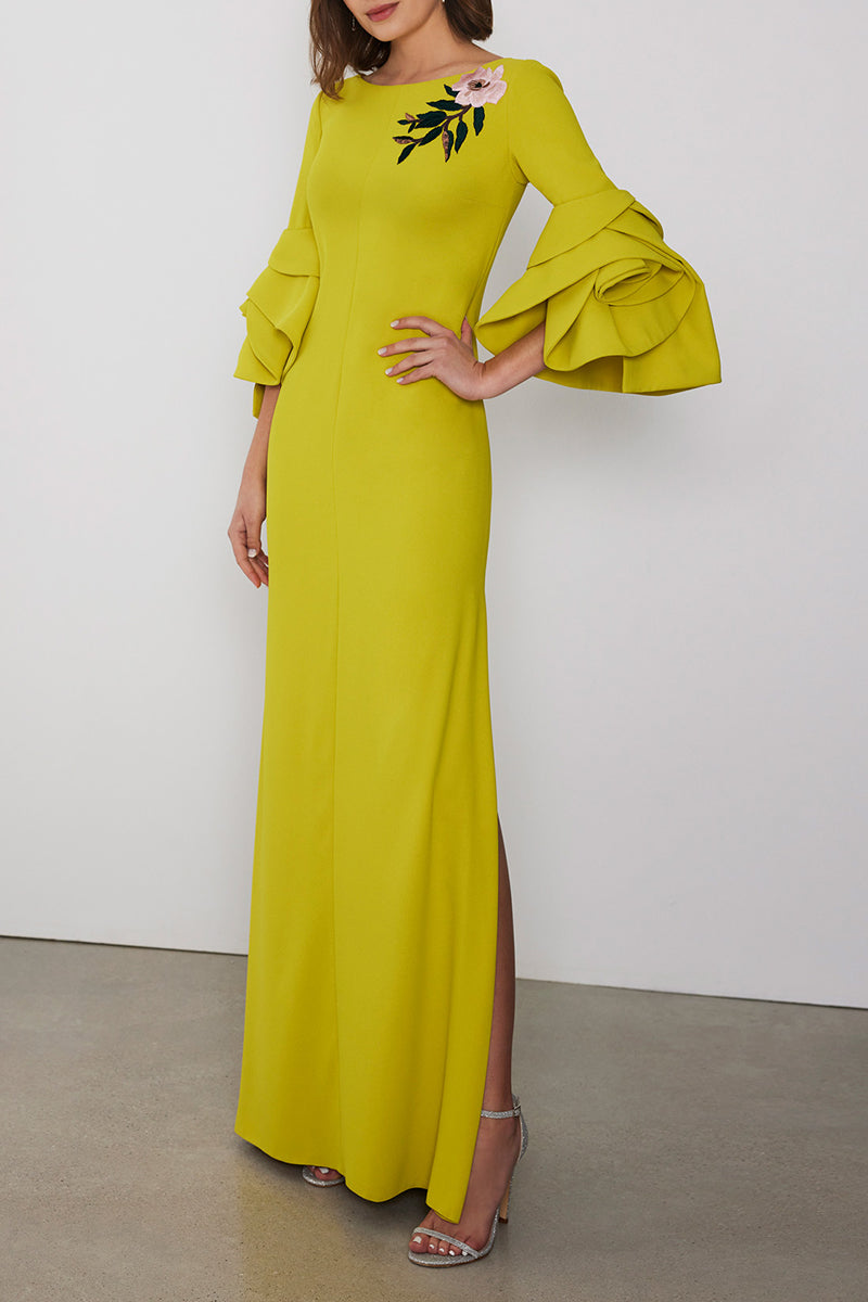 Chic Round Ruffled 3/4 Sleeves Appliques With Side Slit Cocktail Dress