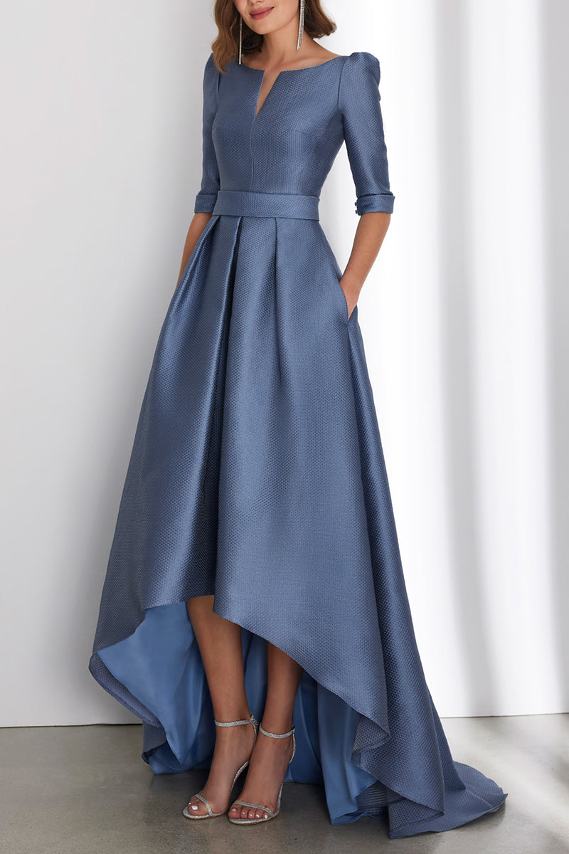 This Chic A-Line High Low Half Sleeves dress offers versatility and style. With its unique design, this dress can be dressed up or down for any occasion. The half sleeves and pockets add practicality to this fashionable piece, making it a must-have for any wardrobe. Flatter your figure with this timeless cocktail dress.