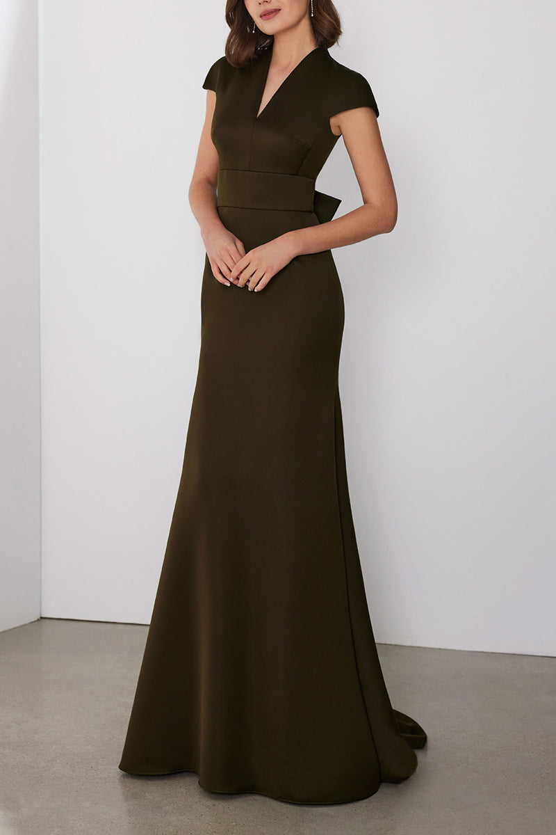 V-Neck Cap Sleeves Trumpet Empire Bowknot Cocktail Dress QM3355