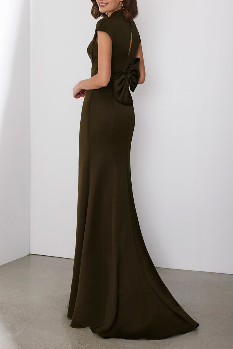 V-Neck Cap Sleeves Trumpet Empire Bowknot Cocktail Dress