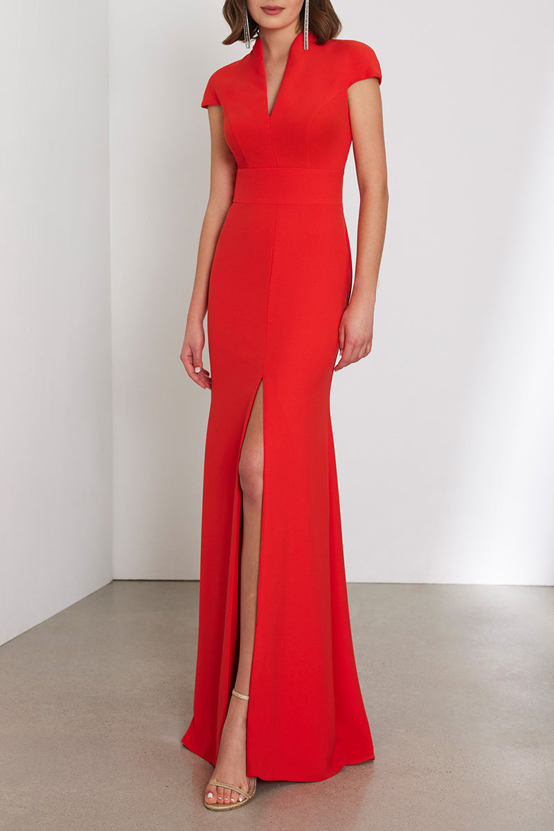 Sexy Fitted V-Neck Cap Sleeves With Slit Evening Cocktail Dress